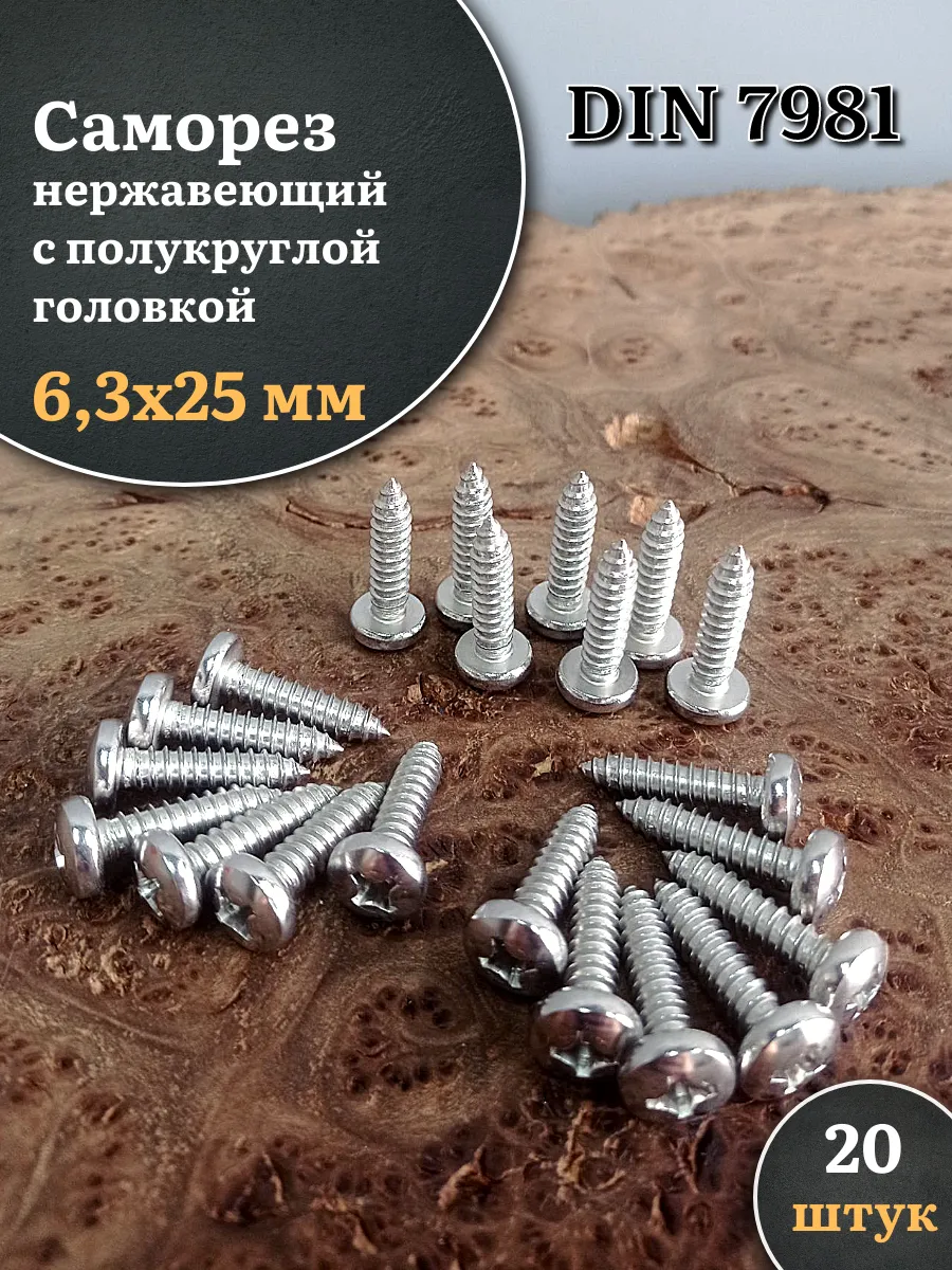 Саморез нержавеющий полукруглая гол. 6,3х25 DIN7981 , 20 шт.