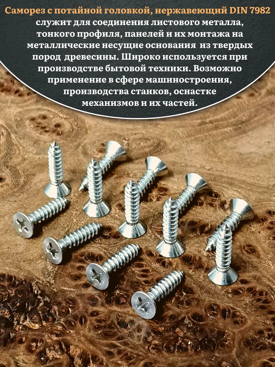 Саморез потайной нержавеющий 4,8х19 РН DIN7982 , 50 шт.