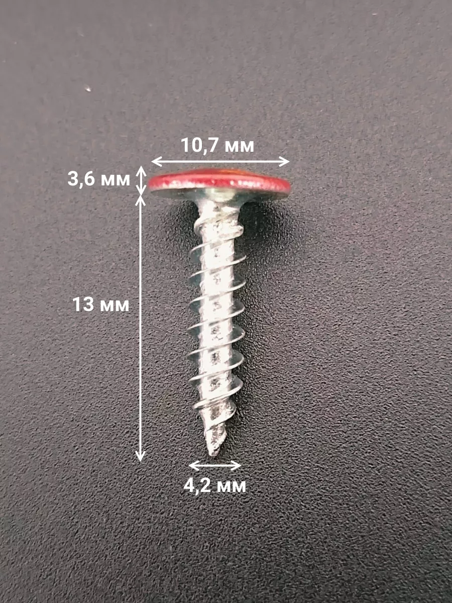 Саморез с прессшайбой острый RAL3005 (красный), 50 шт.