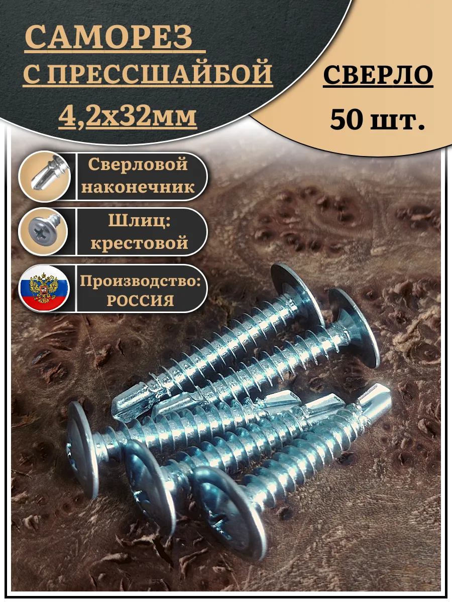 Саморез с прессшайбой сверло, 4,2х32 ОЦ (Россия), 50 шт.