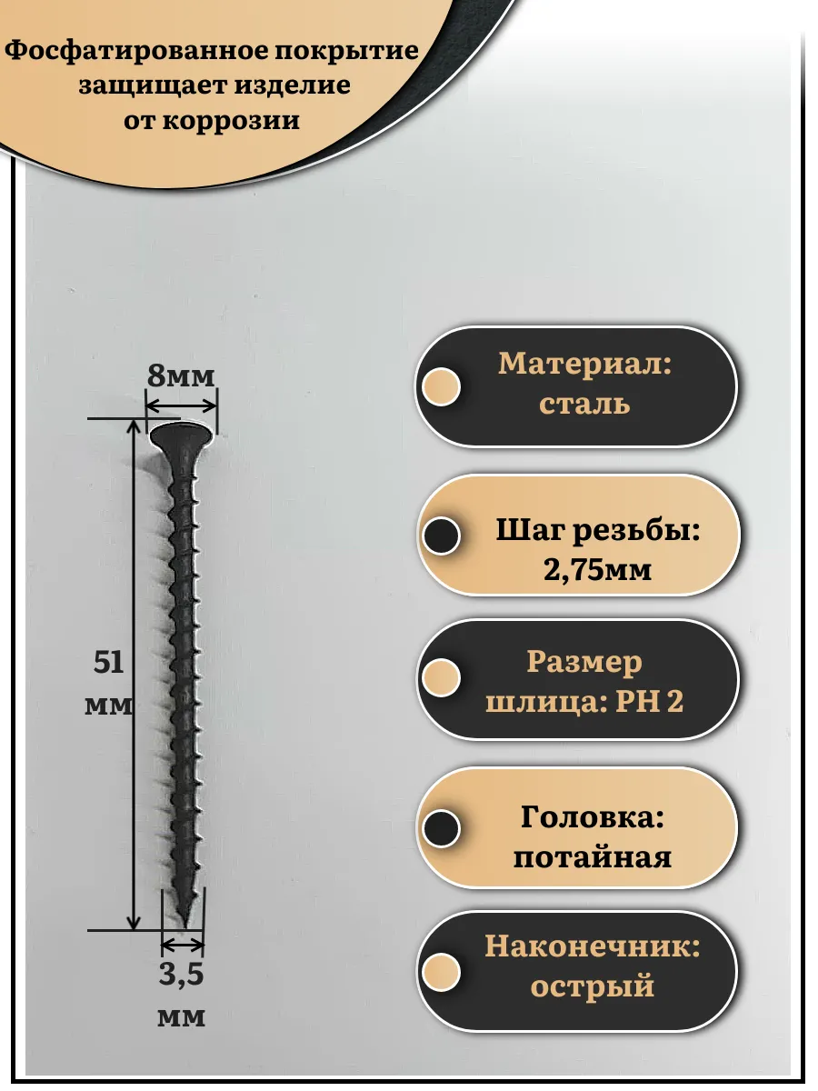 Саморез шуруп по дереву 3,5х51 крупная резьба, чёрный 15 кг.