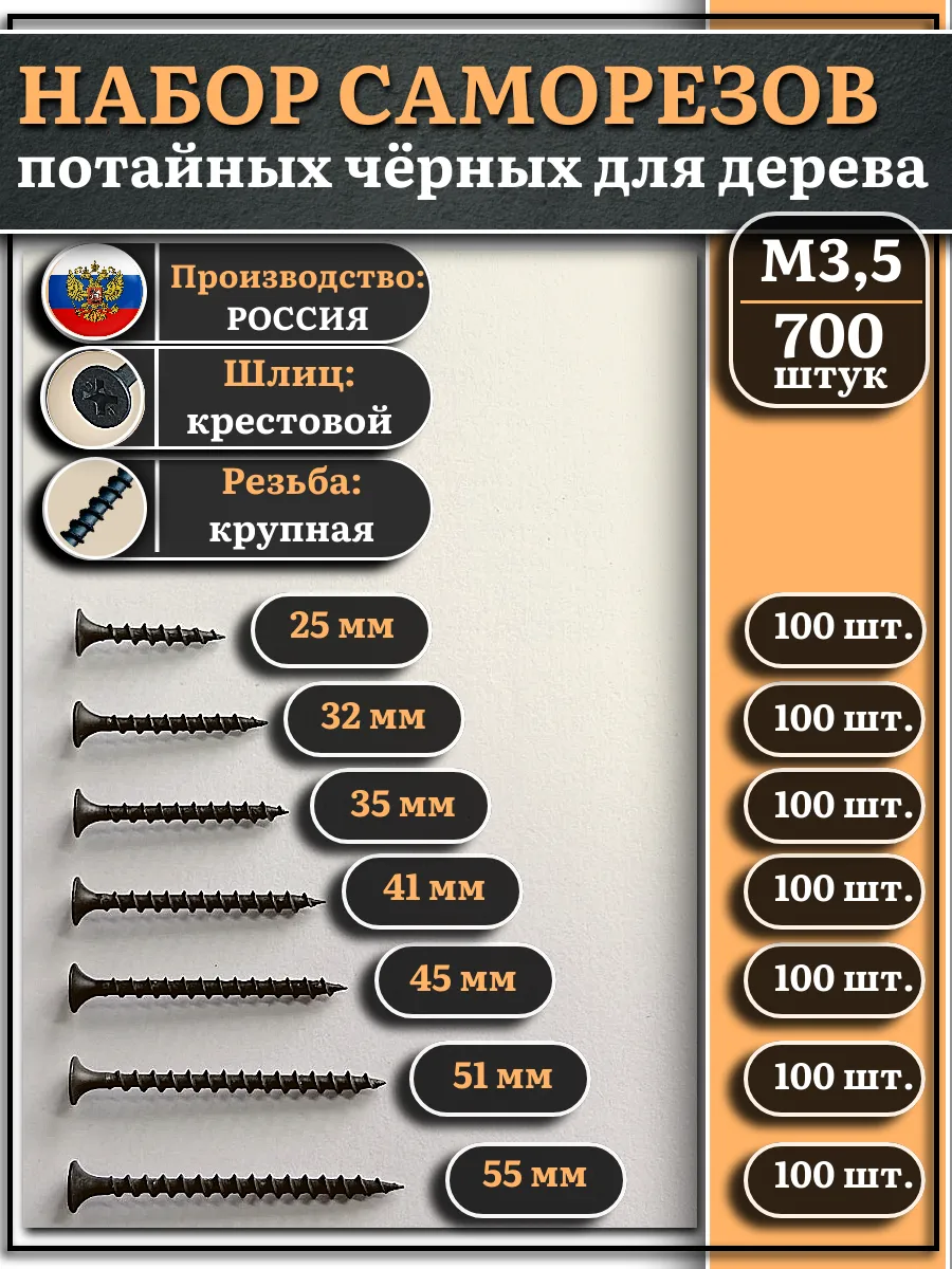Саморезы черные по дереву М3,5 крупная резьба набор 3 (700шт)
