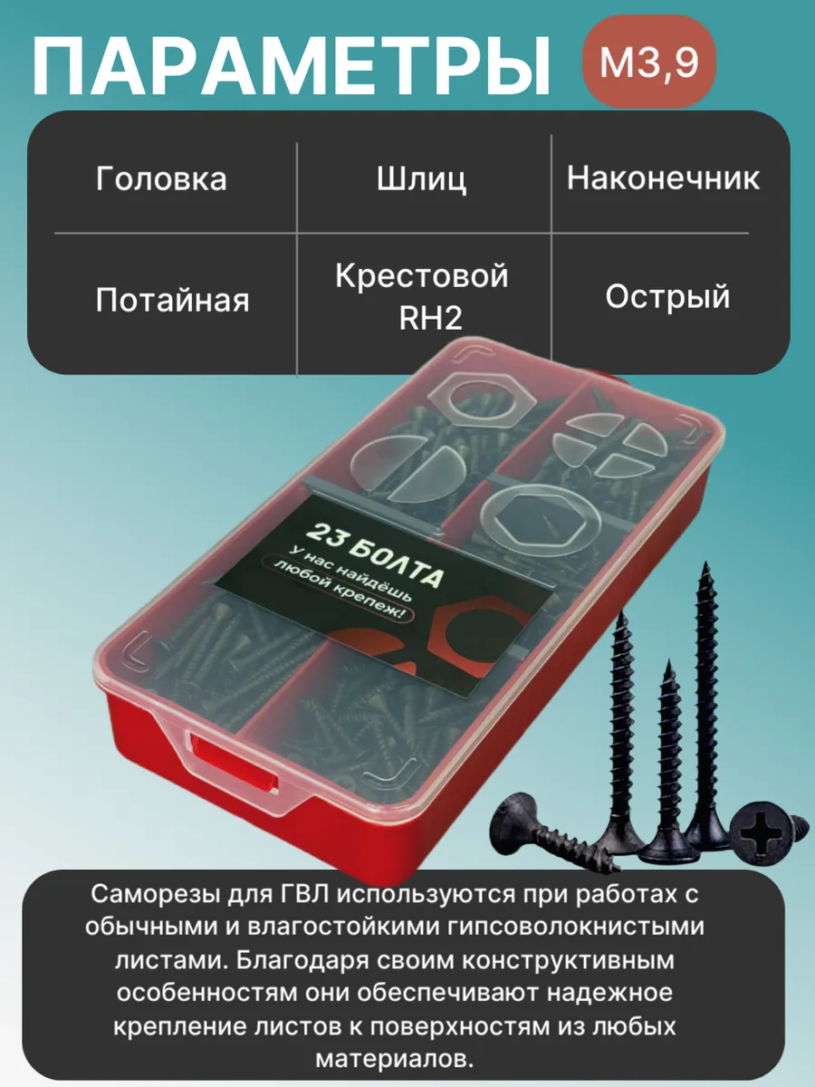 Саморезы для крепления ГВЛ 3,9 в органайзере НАБОР 1