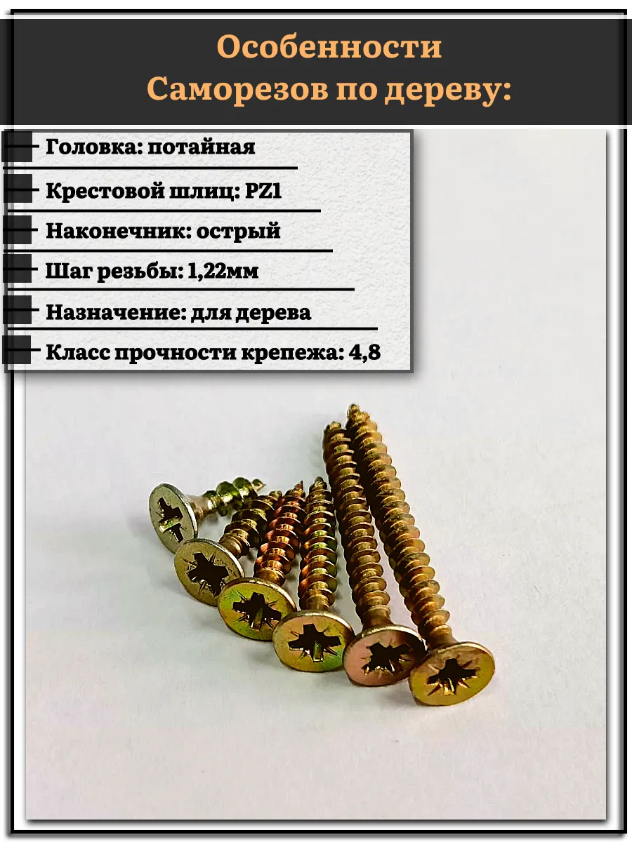 Саморез потайной по дереву 3х40 мм - 20штук.