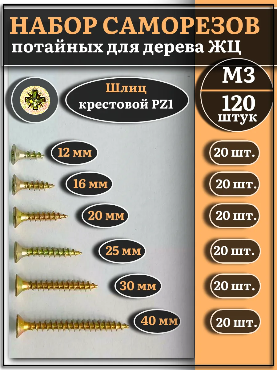Саморезы по дереву М3 ЖЦ набор 1 ( 120 шт)