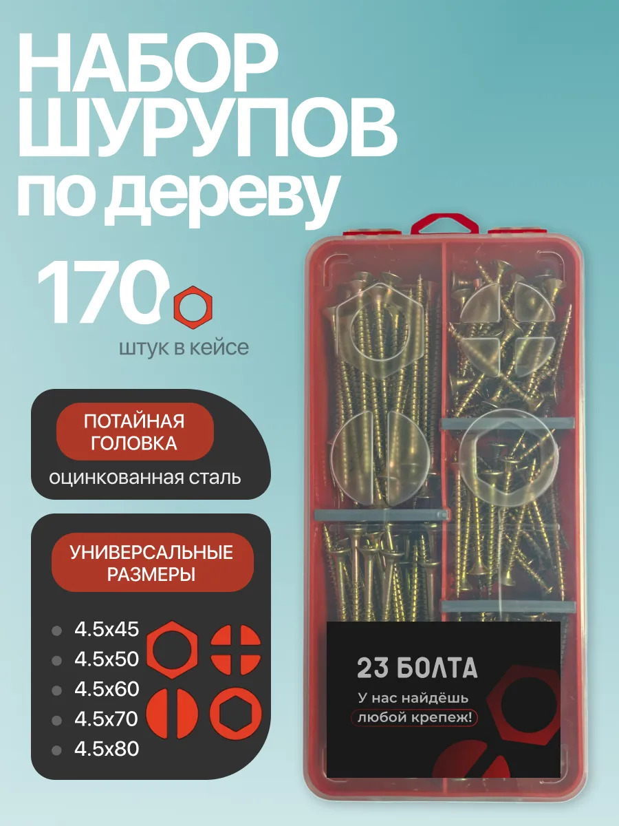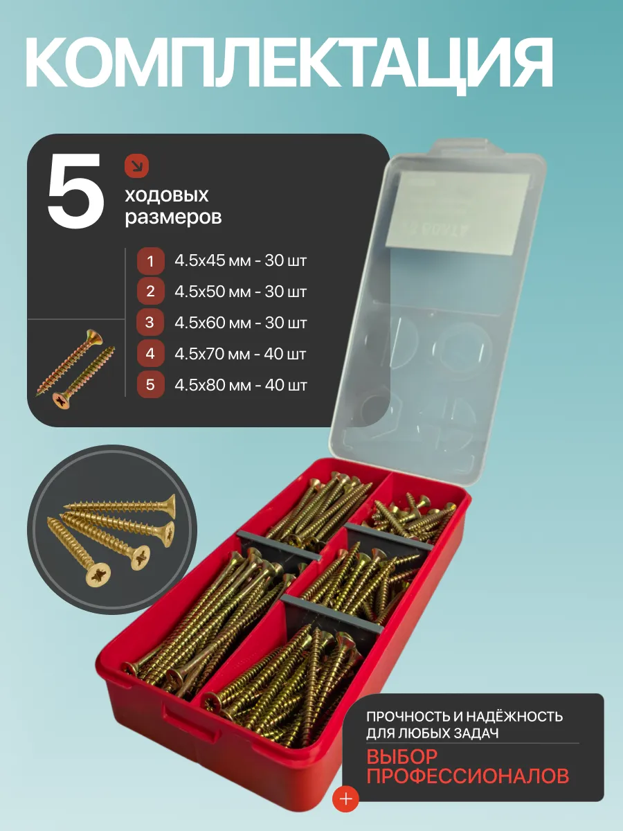 Саморезы по дереву М4,5 ЖЦ в органайзере НАБОР 2