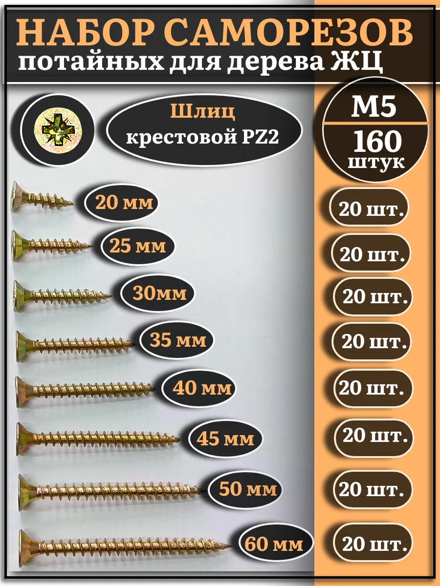 Саморезы по дереву М5 ЖЦ набор 1 ( 160 шт)