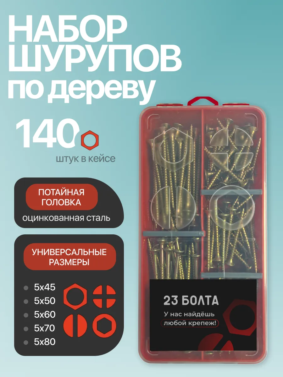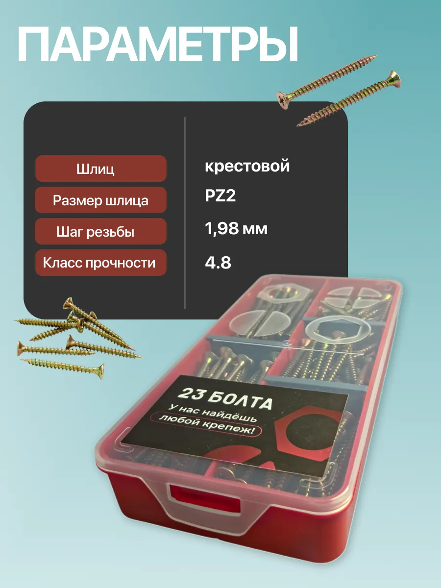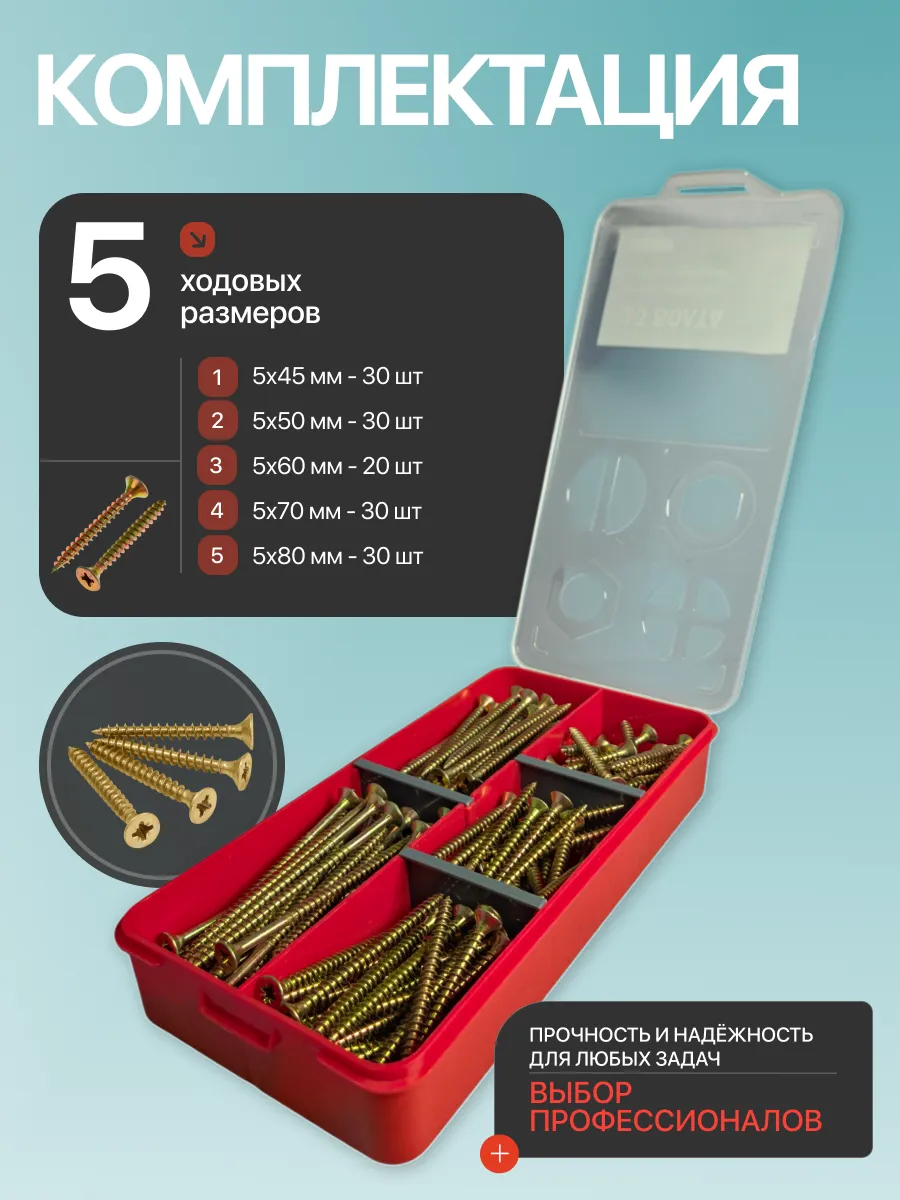 Саморезы по дереву М5 ЖЦ в органайзере НАБОР 2