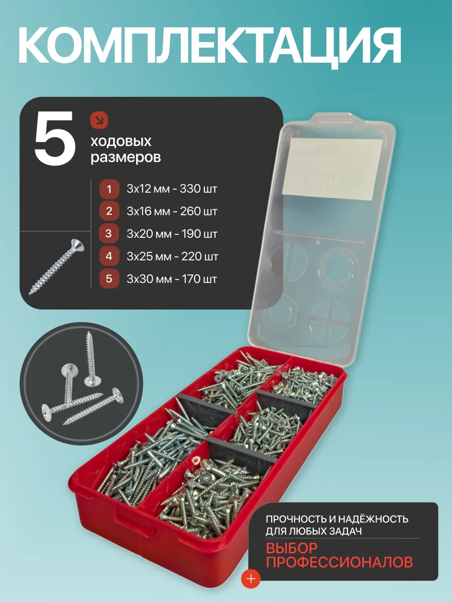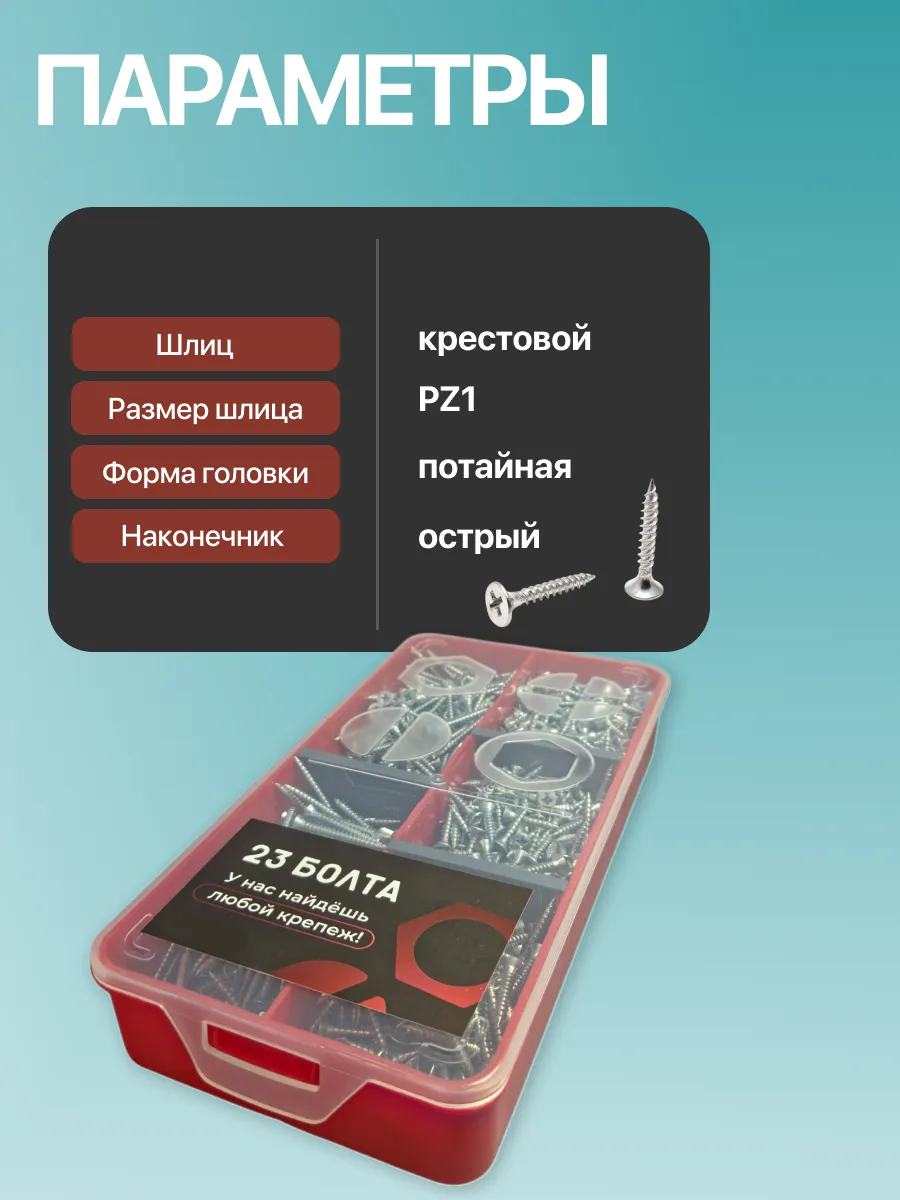 Саморезы потай по дереву БЦ М3 в органайзере НАБОР 1