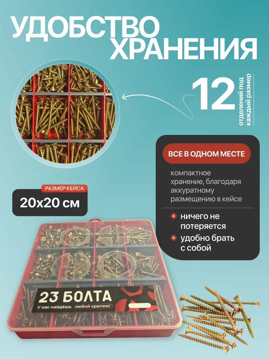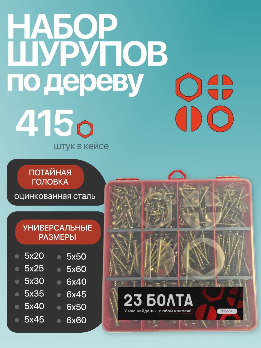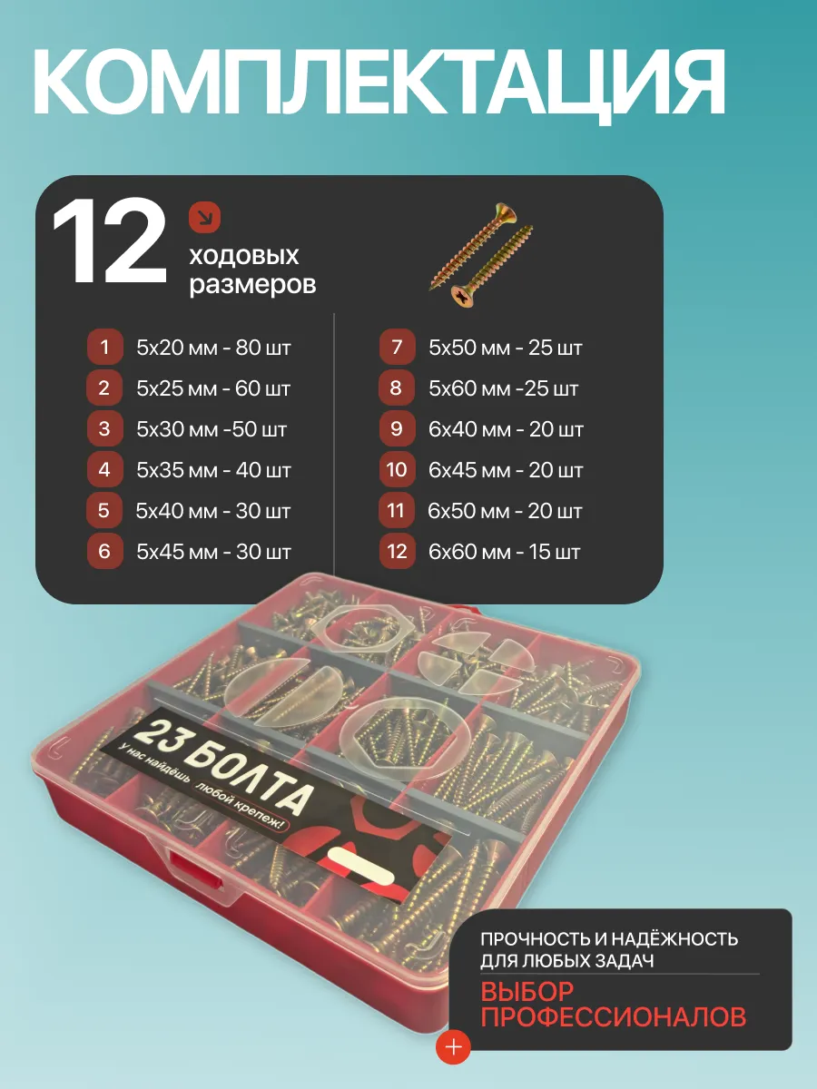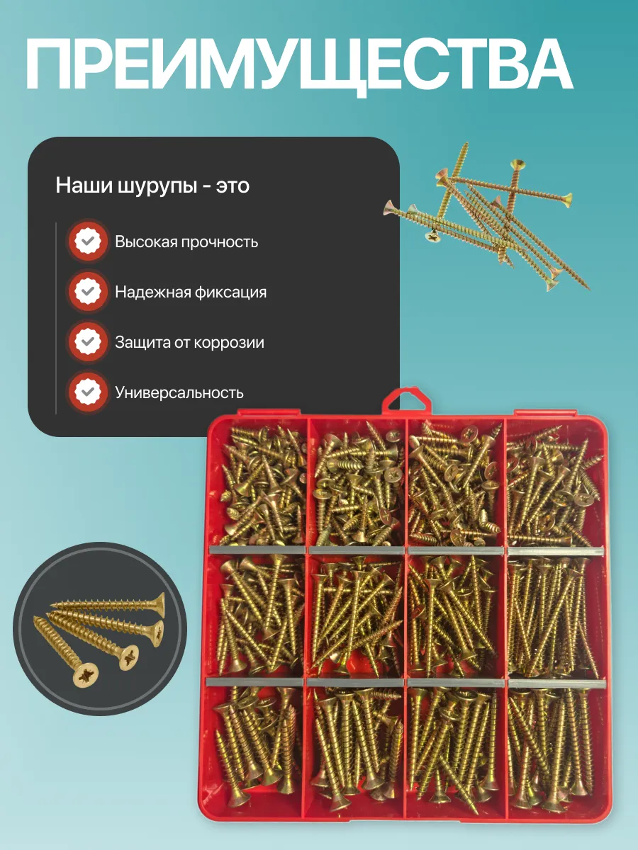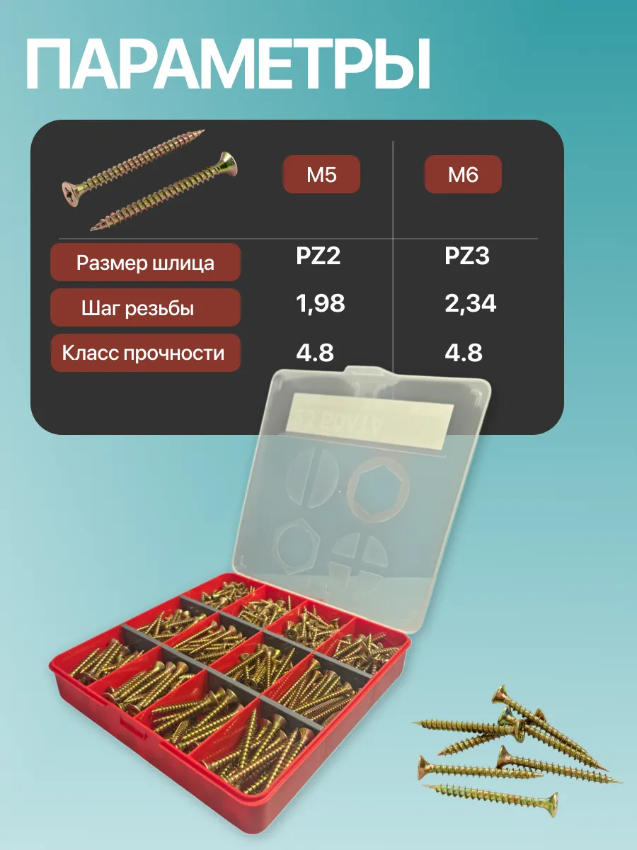 Саморезы шурупы по дереву М5 М6 ЖЦ в органайзере НАБОР 1