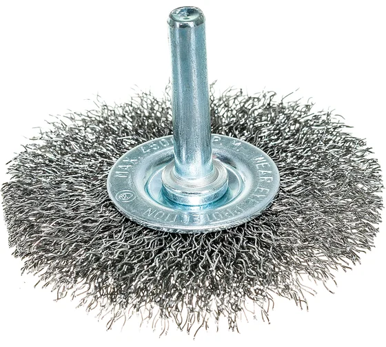 Плоская щетка для дрели Сибртех 744507 диаметром 100 мм, со шпилькой, с щетиной из витой проволоки 0,3 мм, используется для щадящей обработки металлических, деревянных и пластиковых поверхностей. Удаляет загрязнения, ржавчину, старые лакокрасочные покрытия. Благодаря плоской форме щетка идеально подходит для очистки труднодоступных мест, пазов, изгибов, внутренних углов. Хвостовик диаметром 6 мм устанавливается в патрон дрели. Рекомендуемая скорость вращения 4500 об/мин. Во время работы следует использовать средства индивидуальной защиты. Щетку применяют во время строительства, ремонта, а также в быту.