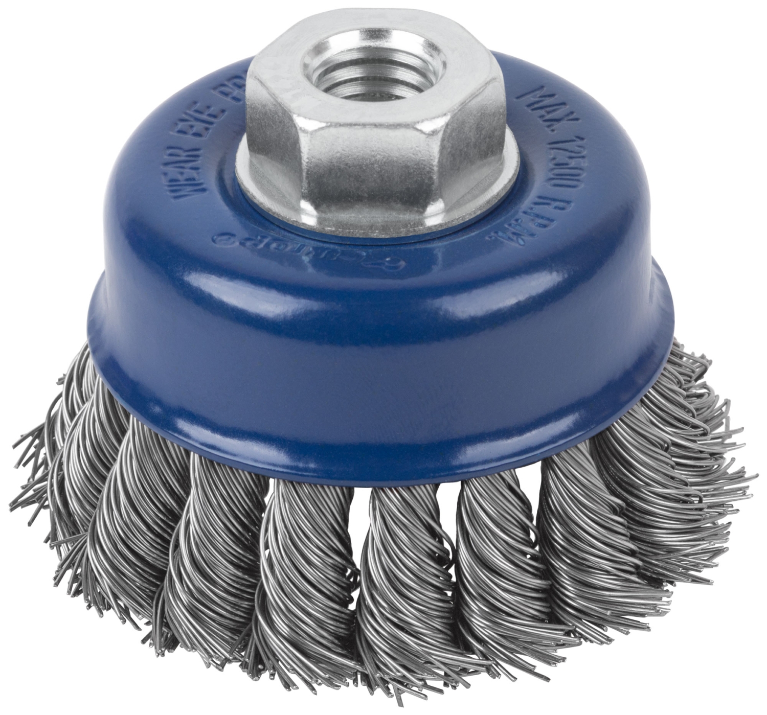Щетка для УШМ, тип «Чашка», М14, отлично подходит для обработки больших плоскостей. Форма «Чашка» обеспечивает хорошую площадь прилегания к поверхности. Конструкция щетки оснащена усиленной гайкой с шайбой (кроме D65), которая способствует предотвращению деформации изделия. Идеальная балансировка щеток значительно продлевает срок службы инструмента. Металлическая проволока 0,5 мм.