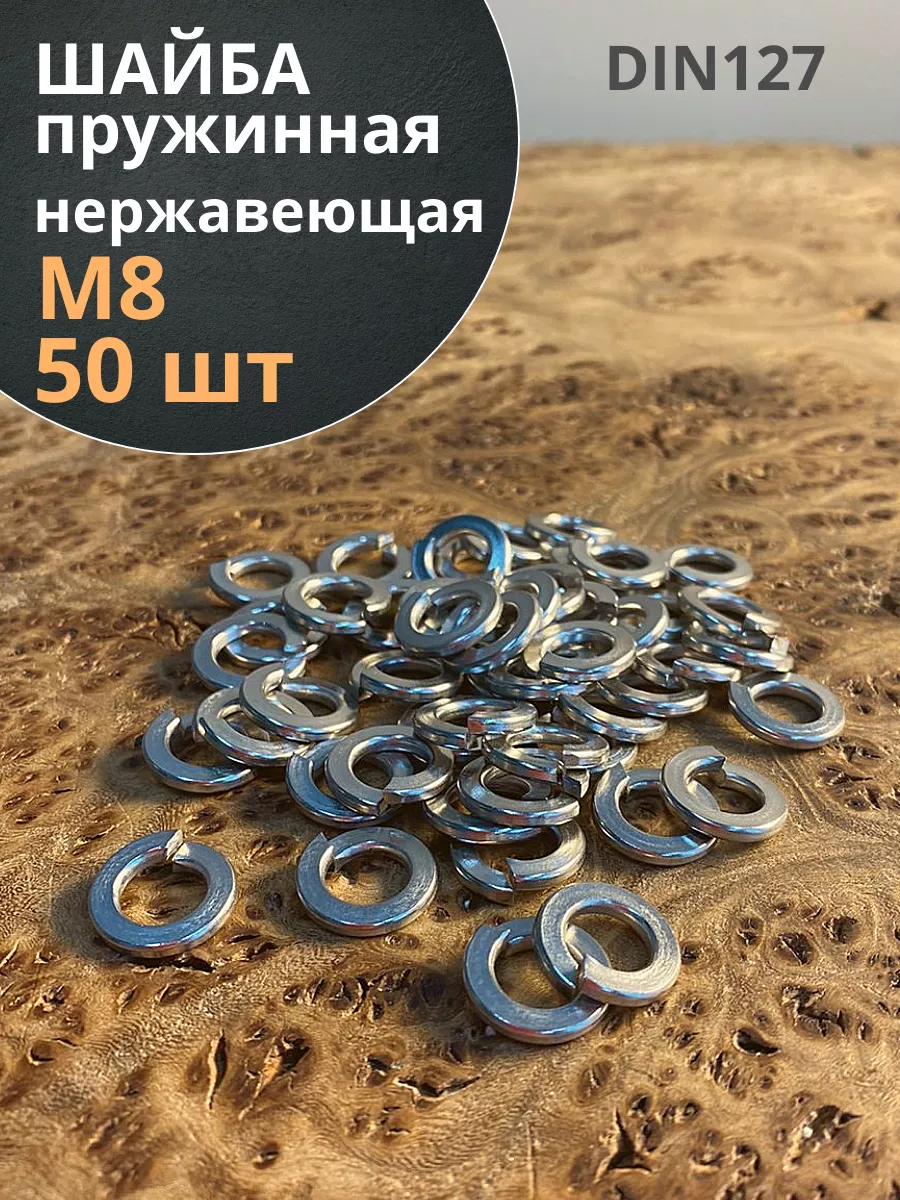 Шайба гровер пружинная нержавеющая М8 DIN127, 50 шт.