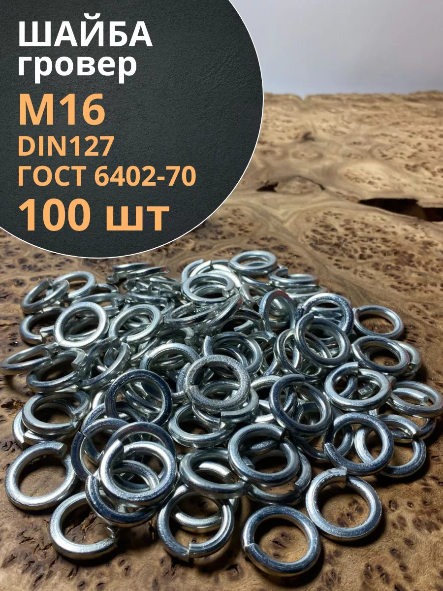 | Шайба гровер пружинная оцинкованная М16 DIN127, 100 шт. | 11329 | 1 шт. |