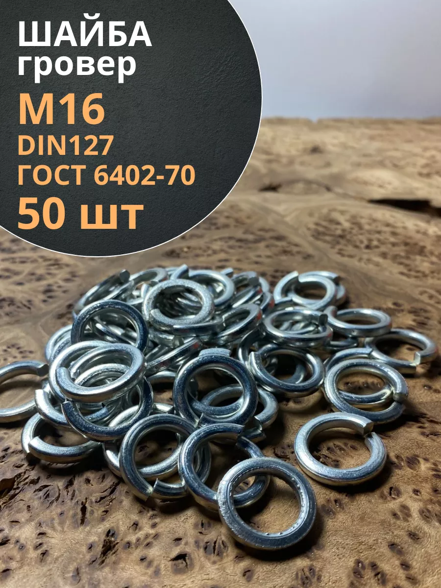 | Шайба гровер пружинная оцинкованная М16 DIN127, 50 шт. | 11314 | 1 шт. |
