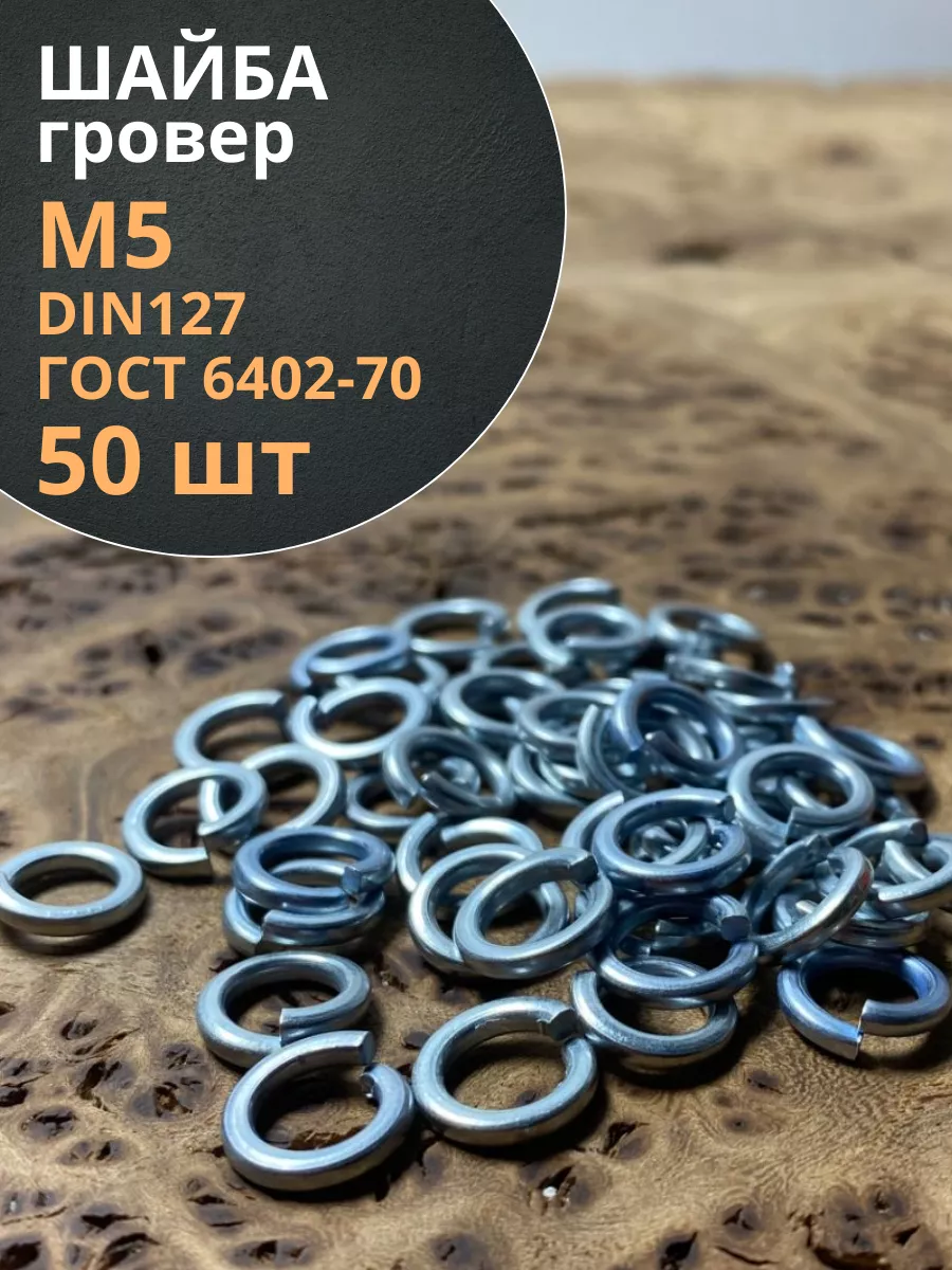 | Шайба гровер пружинная оцинкованная М5 DIN127, 50 шт. | 11308 | 1 шт. |