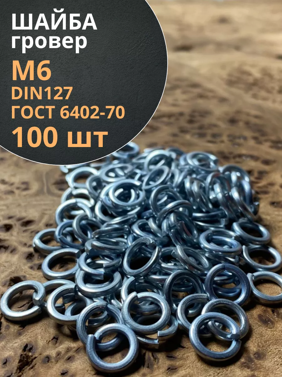 | Шайба гровер пружинная оцинкованная М6 DIN127, 100 шт. | 11324 | 1 шт. |