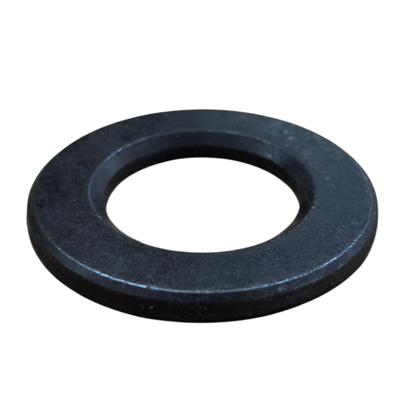 Шайба закаленная плоская с фаской DIN 6916 - специальный крепежный элемент повышенной твердости для высокопрочных предварительно нагруженных болтовых соединений (HV) с диаметром резьбы от М12 до М36 и увеличенными размерами под ключ. Используется для увеличения опорной поверхности резьбового крепежа, что позволяет приложить большое усилие затяжки. изготавливается из углеродистой стали С45 с дополнительной закалкой и отпуском до твердости 300HV, антикоррозийного покрытия не имеет,.