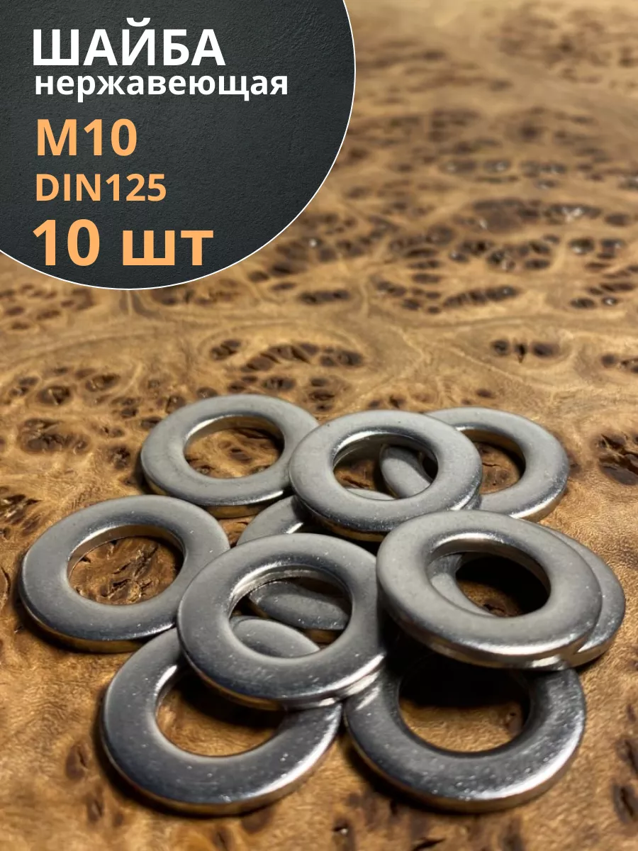 Шайба Нержавеющая М10 DIN 125 А2 плоская 10 шт.
