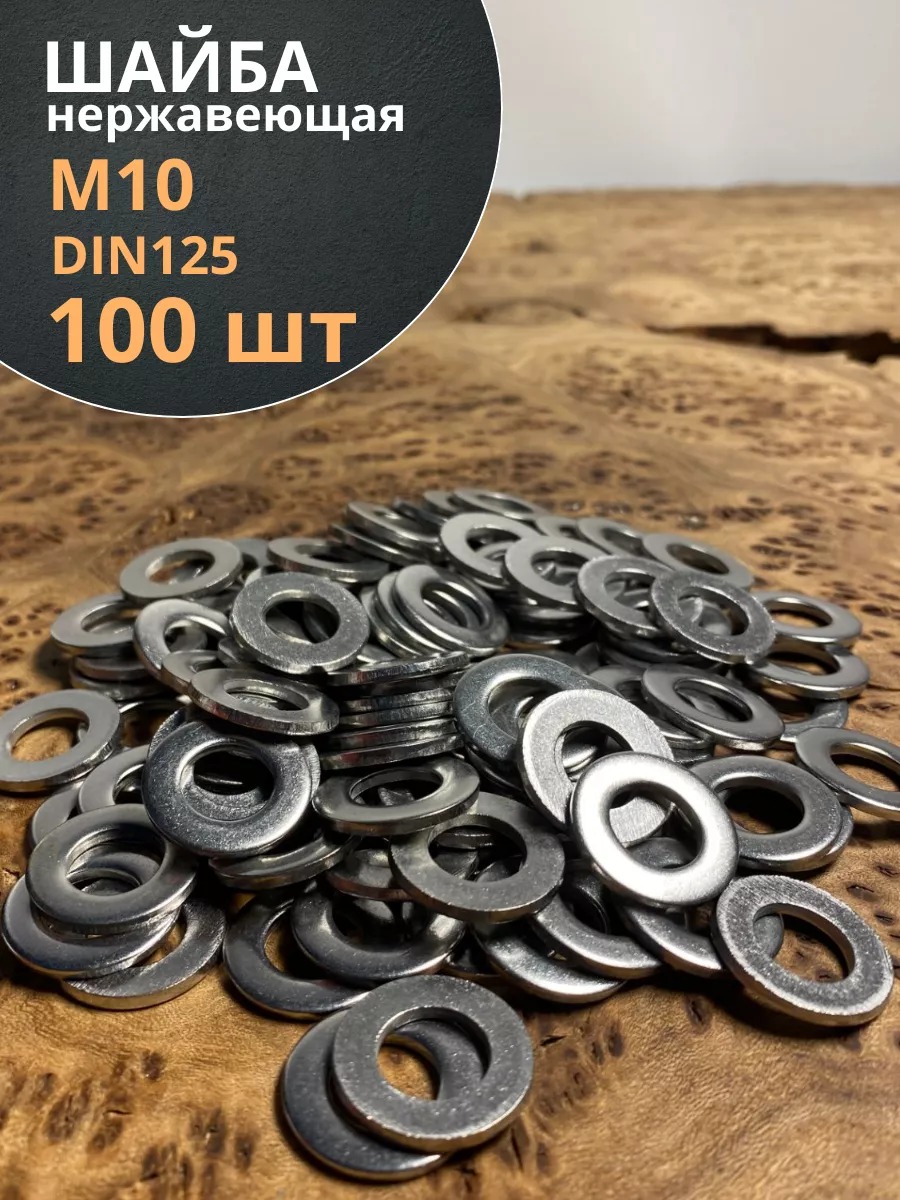 Шайба Нержавеющая М10 DIN 125 А2 плоская 100 шт.