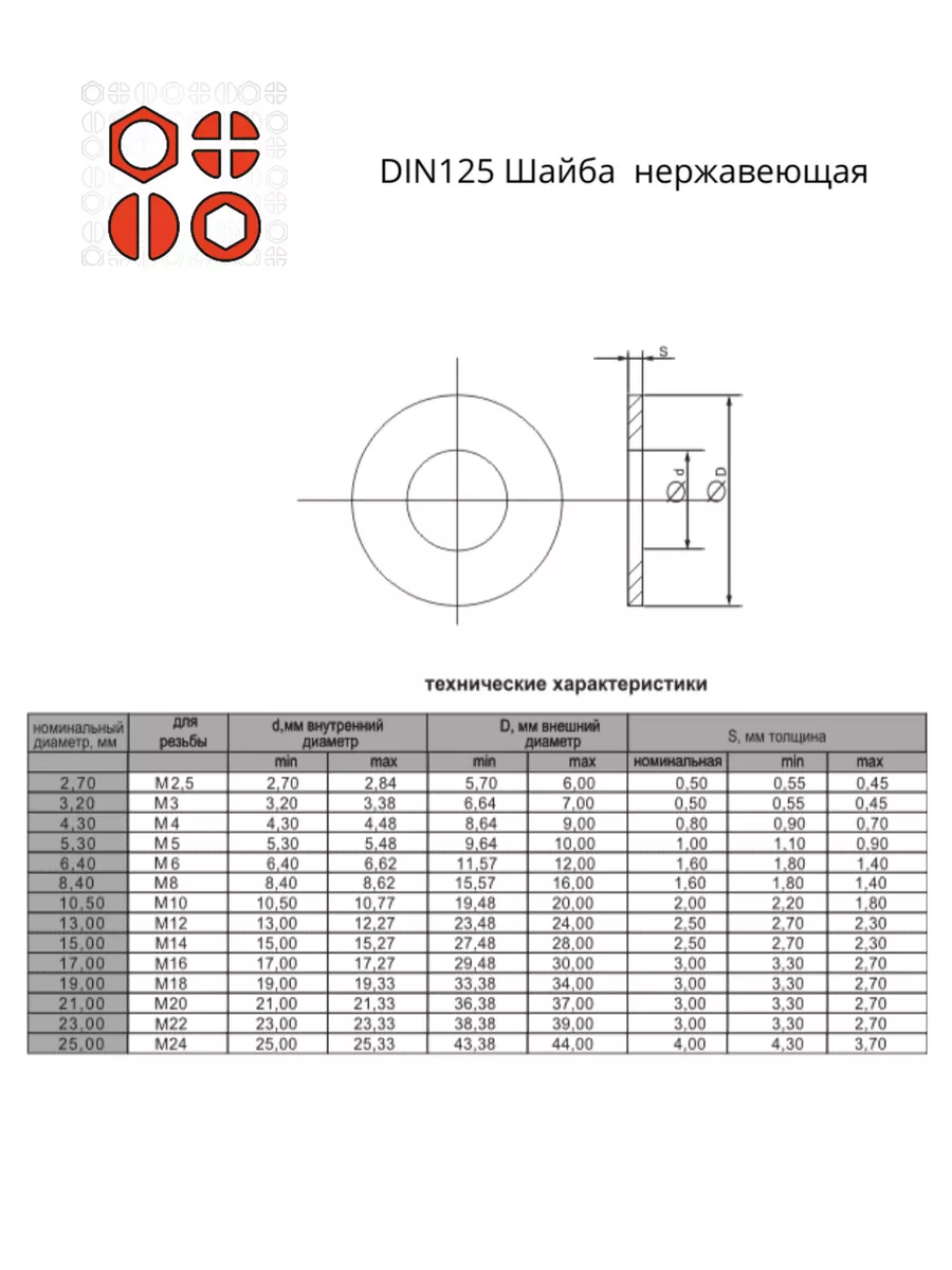 Шайба Нержавеющая М5,6,8,10,12 DIN125 (по 50 шт)