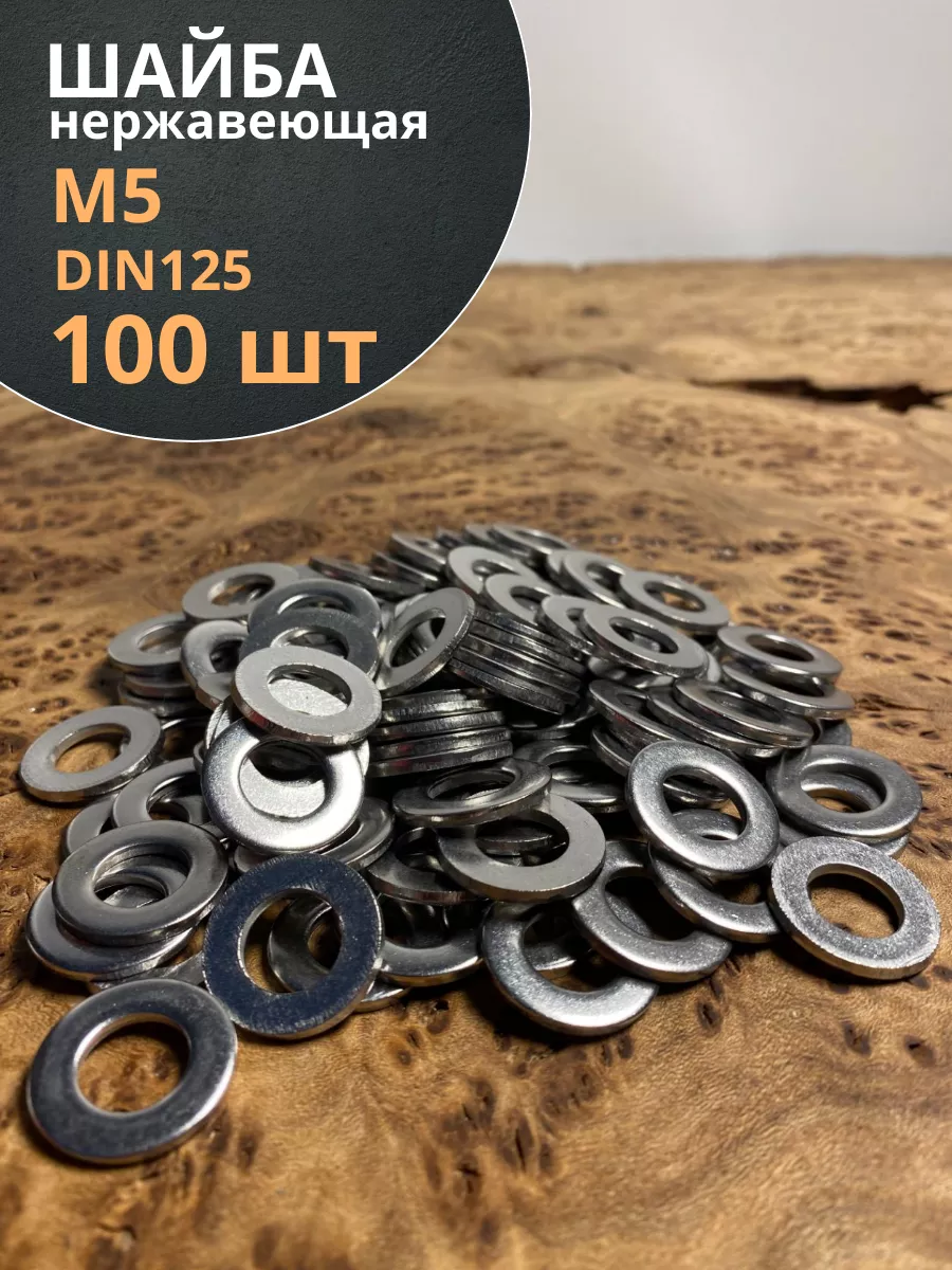 Шайба Нержавеющая М5 DIN 125 А2 плоская 100 шт.