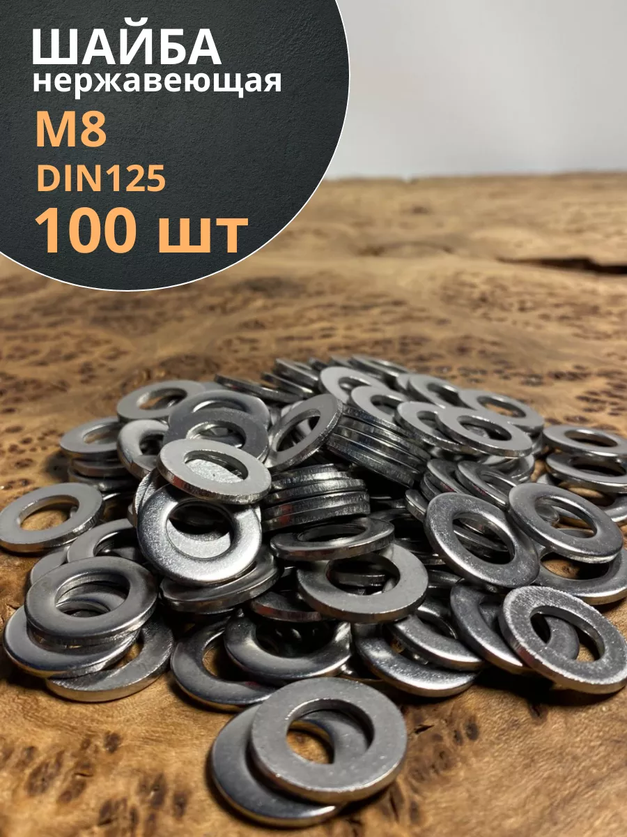 Шайба Нержавеющая М8 DIN 125 А2 плоская 100 шт.