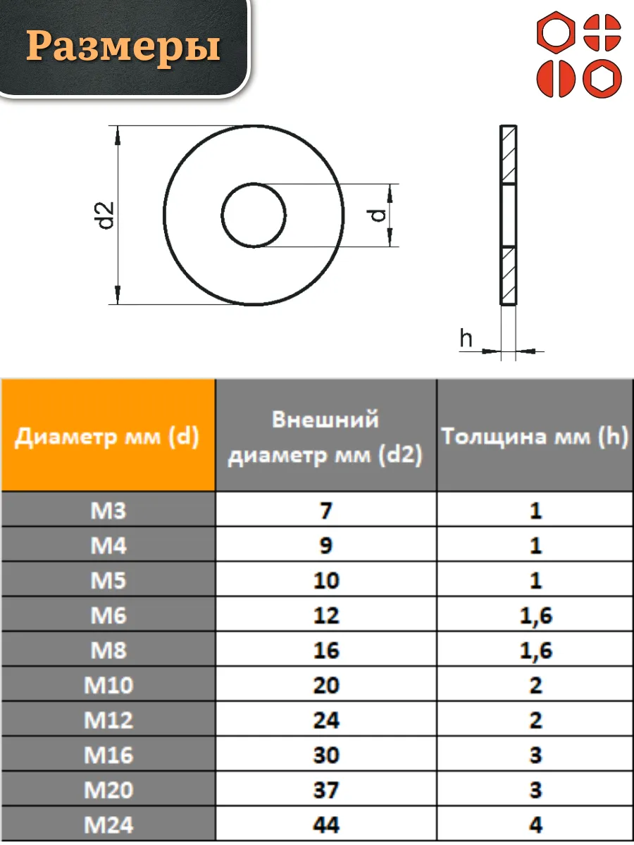 | Шайба полиамидная М24 DIN125 (пластик), 10 шт. | 2000000616643ф10 | 1 шт. |
