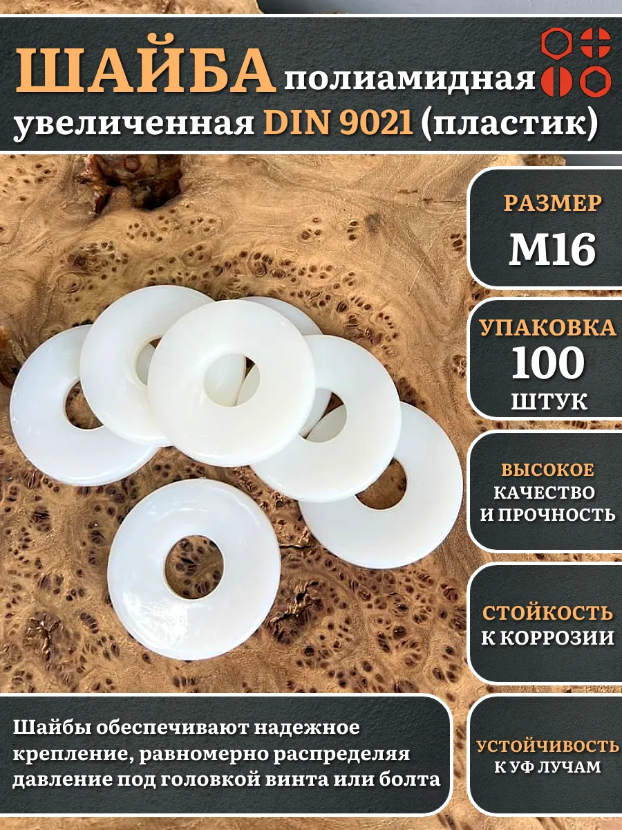 | Шайба полиамидная увеличенная М16 DIN9021 (пластик), 50 шт. | 2000000608488ф50 | 1 шт. |
