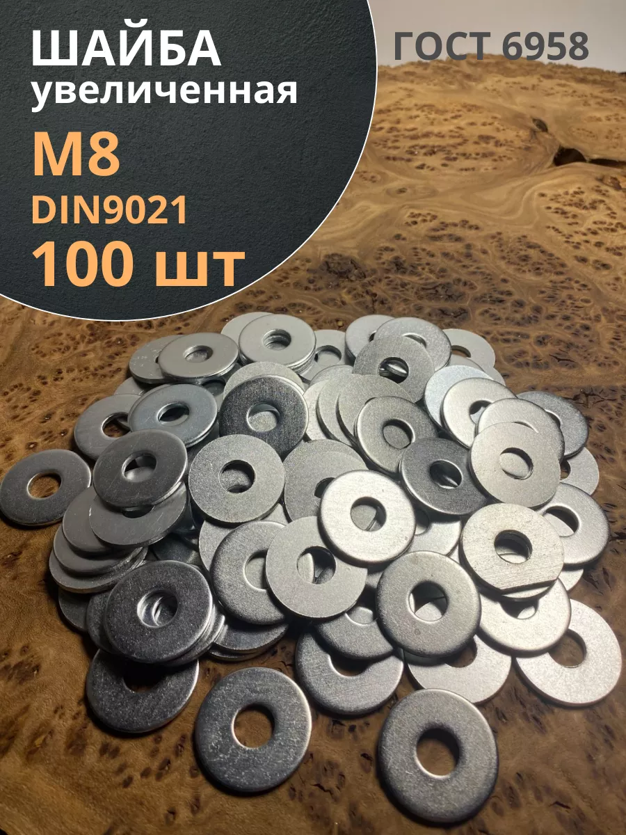 Шайба увеличенная оцинкованная М8 DIN 9021, 100 шт.