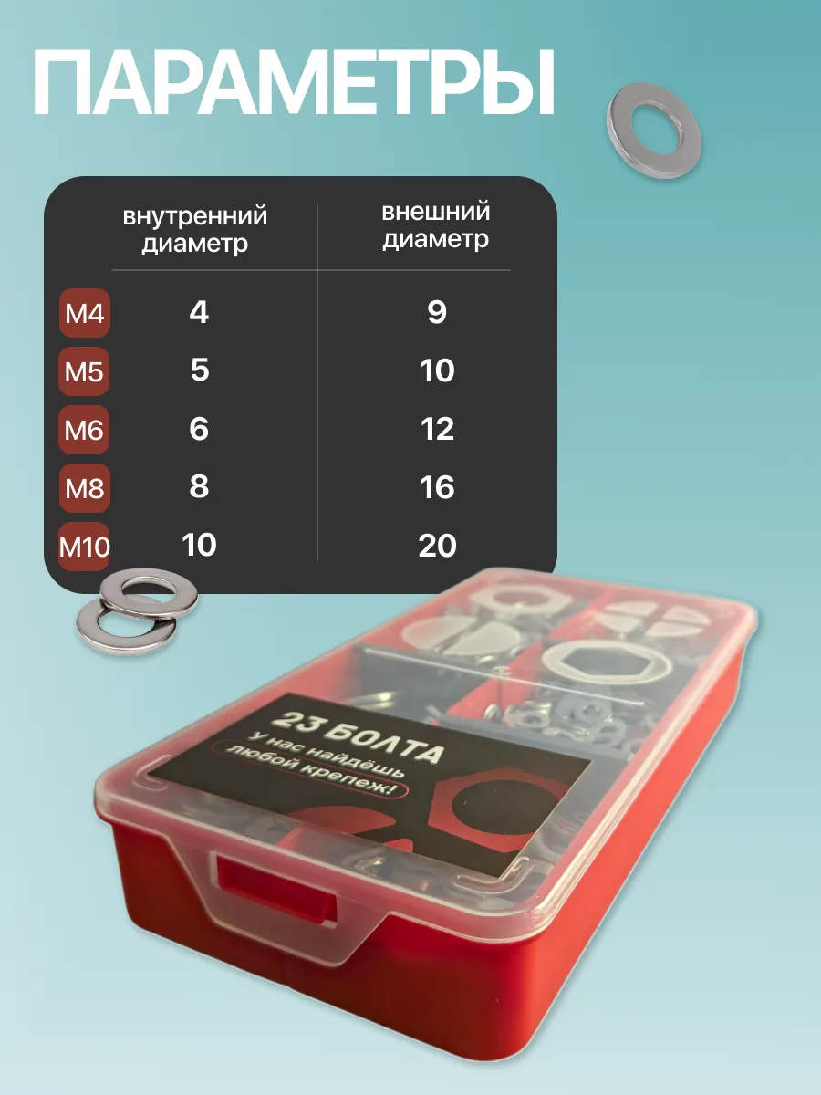 Шайбы плоские ОЦ М4,5,6,8,10 в органайзере НАБОР 1