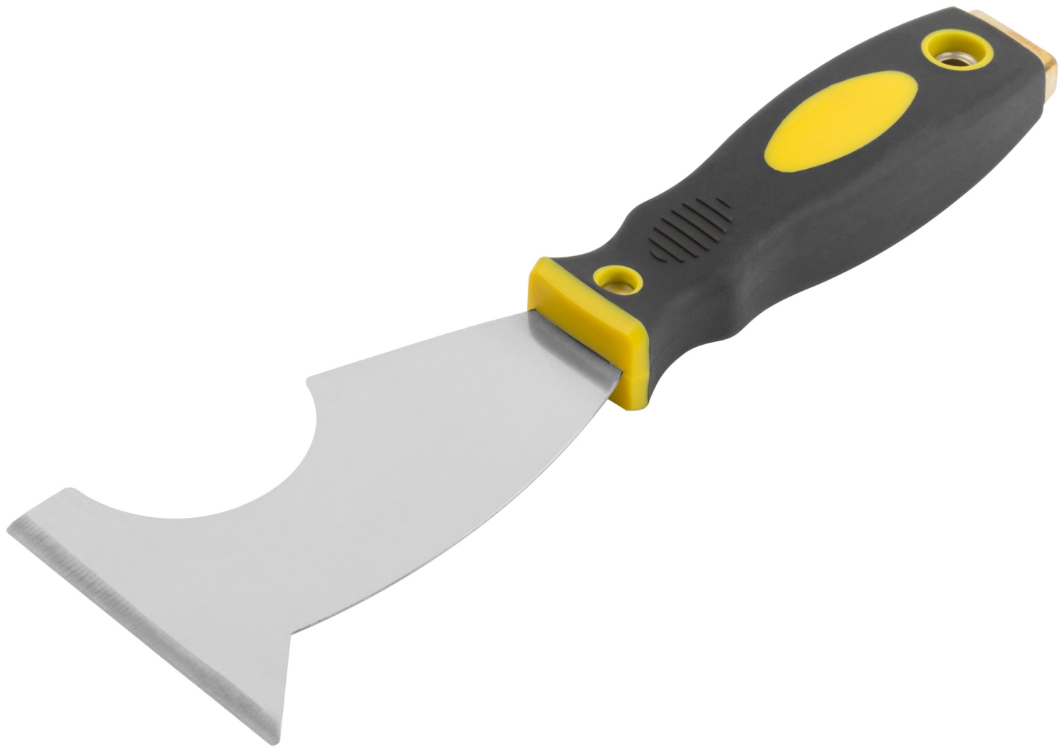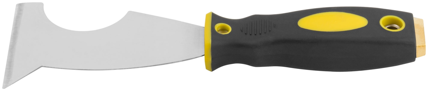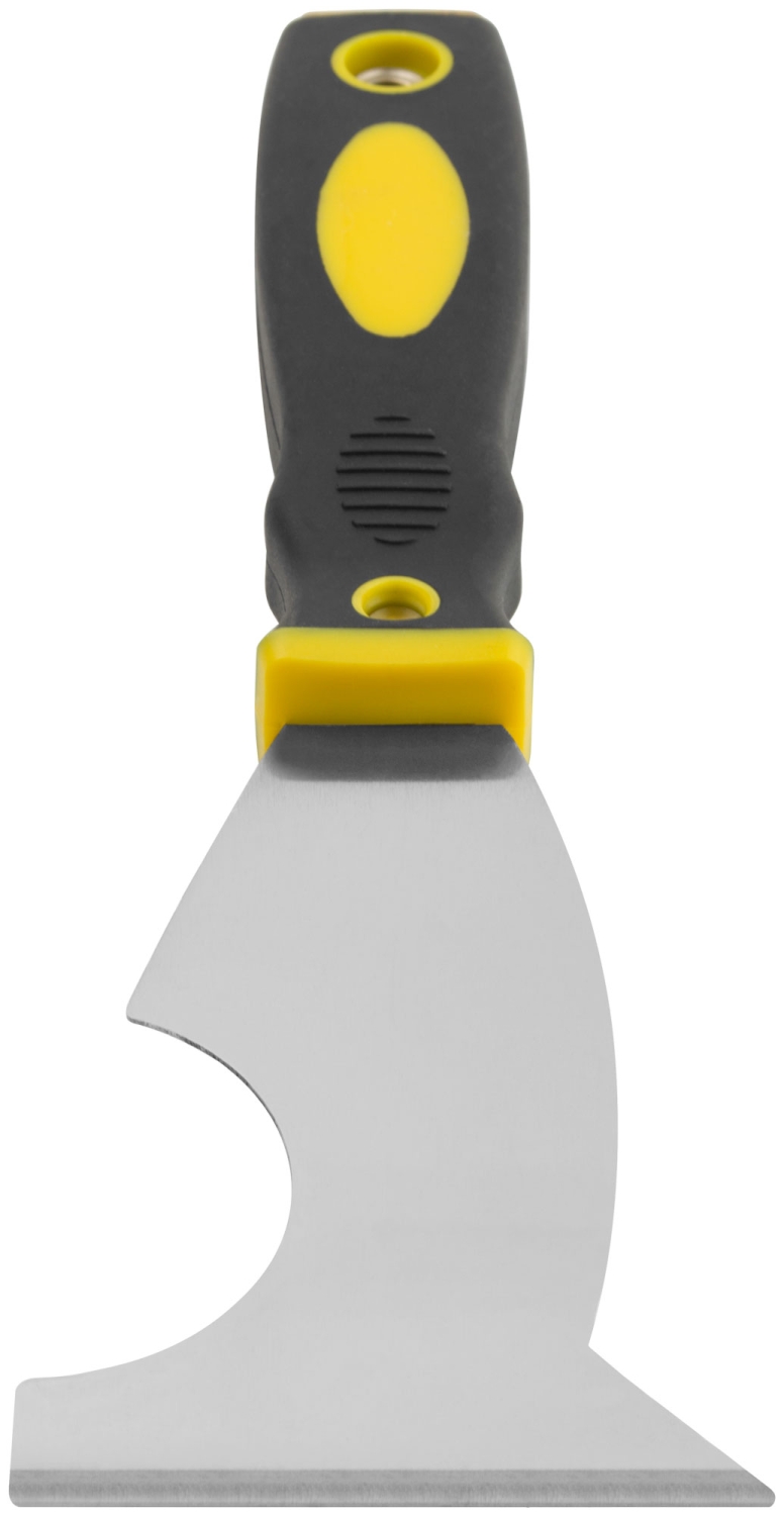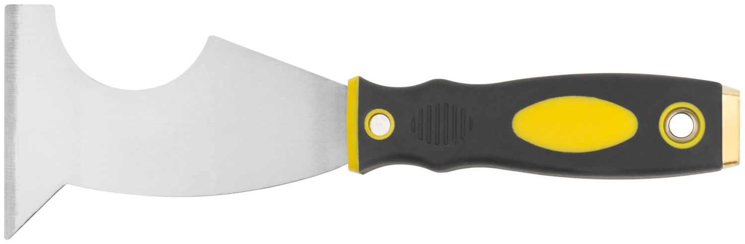 Шпатель многофункциональный Профи. Твёрдое лезвие из полированной усиленной стали HRC 72-78, заточенная грань, мягкая двухкомпонентная ручка с металлическим бойком.