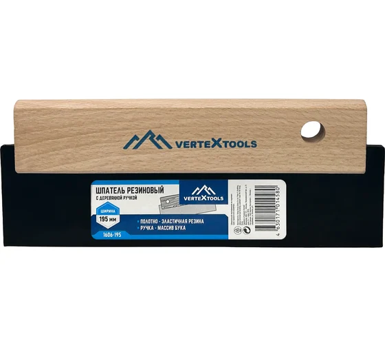 Шпатель резиновый дерев.рук. 195 мм VERTEXTOOLS