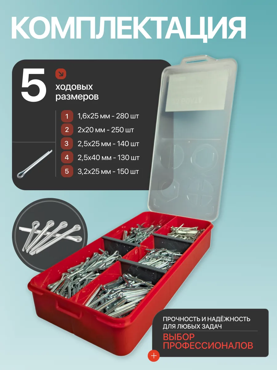 Шплинты прямые для фиксации крепежа в органайзере НАБОР 1