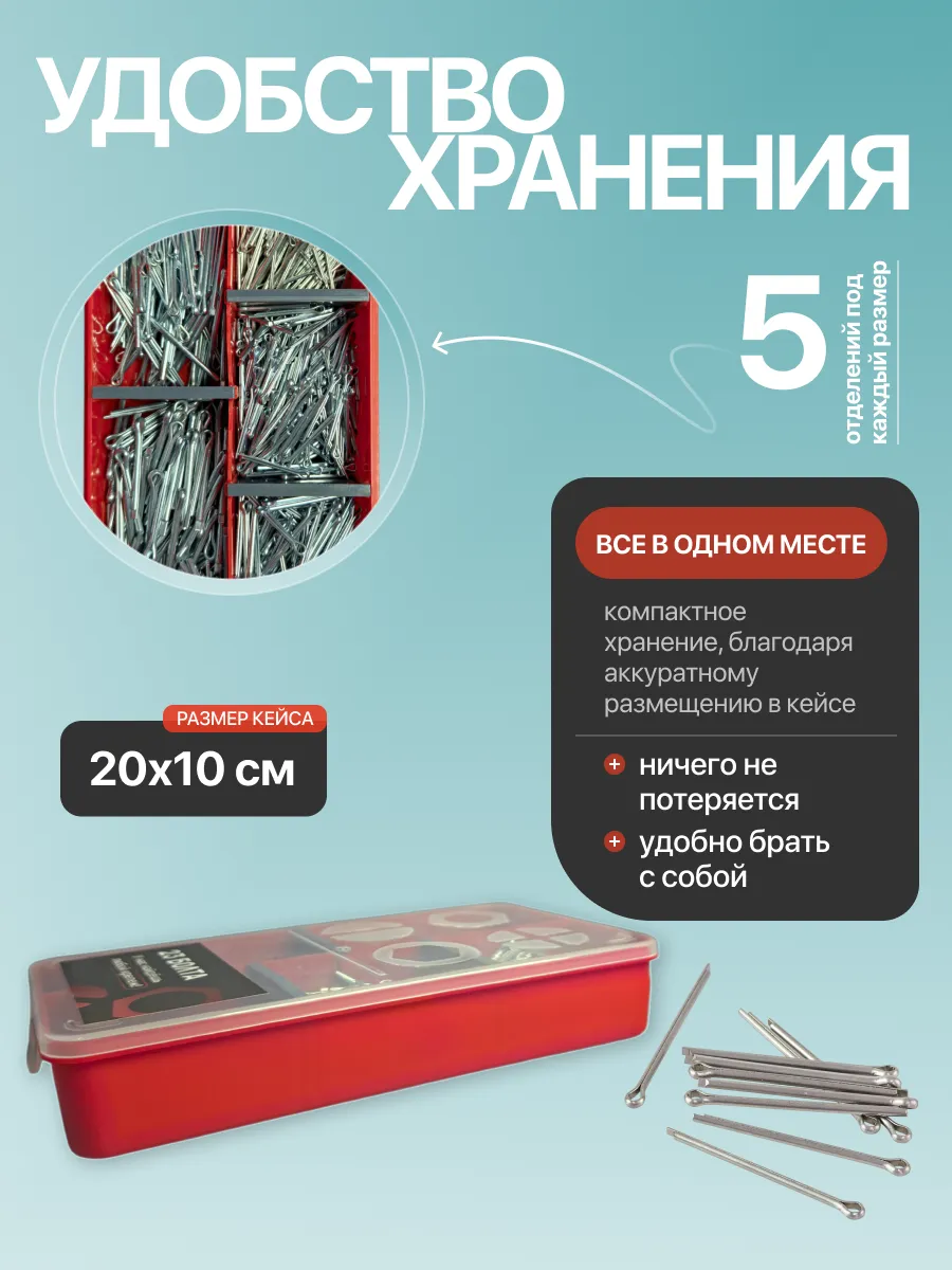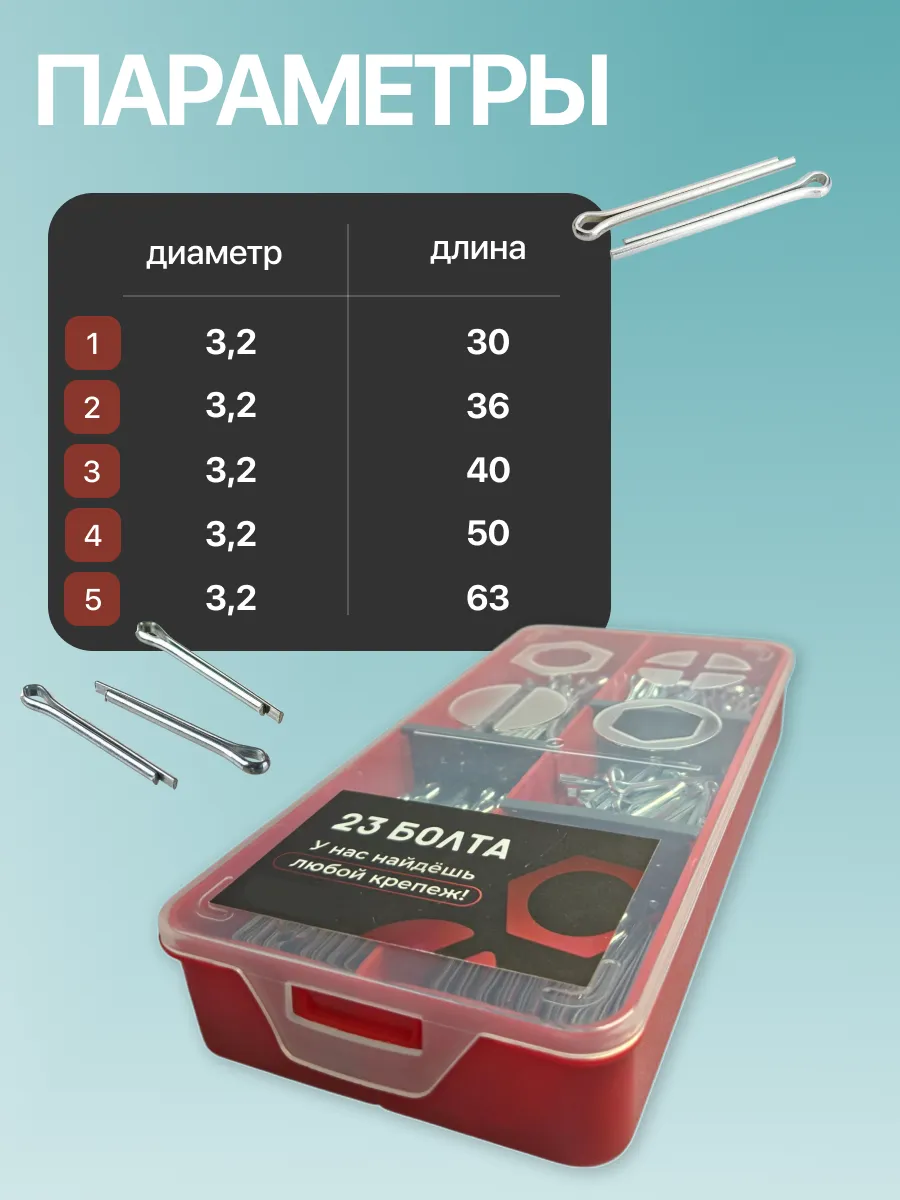 Шплинты прямые для фиксации крепежа в органайзере НАБОР 2