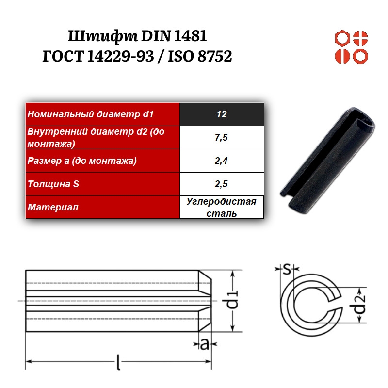 Штифт пружинный DIN 1481 12х30 / ГОСТ 14229-93 / ISO 8752, 200 шт.