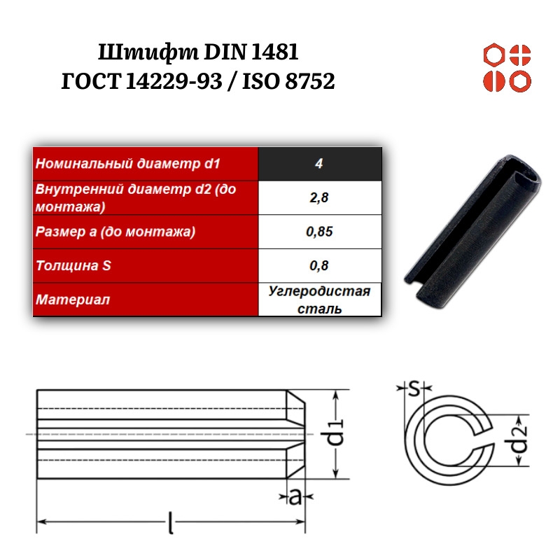 Штифт пружинный DIN 1481 4х28 / ГОСТ 14229-93 / ISO 8752, 2000 шт.
