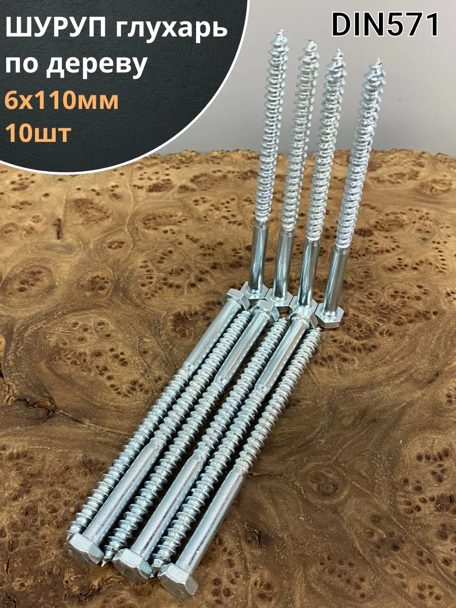 Шуруп глухарь по дереву 6х110, 10 шт.