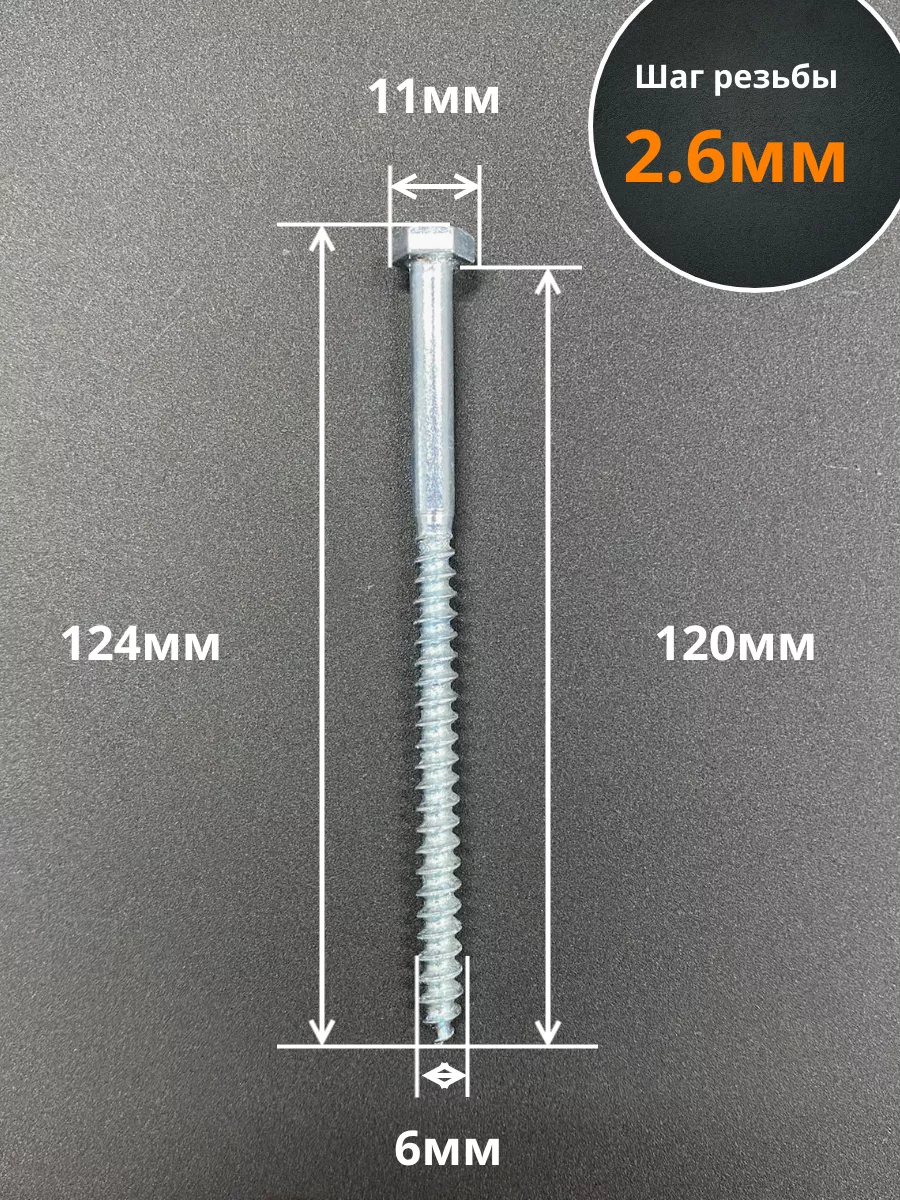 Шуруп глухарь по дереву 6х120, 10 шт.