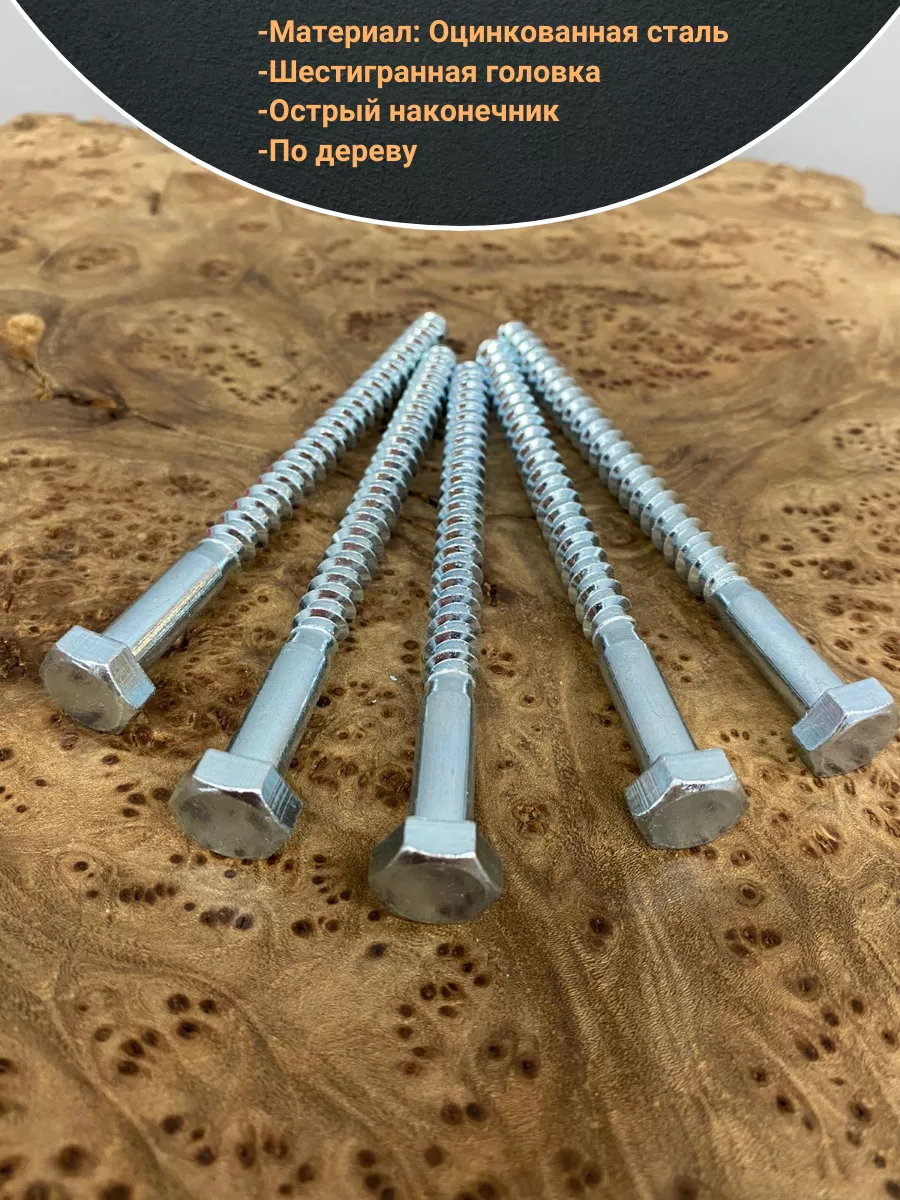 Крепёжное изделие в виде стержня с шестигранной или квадратной головкой под ключ и специальной наружной резьбой, образующей внутреннюю резьбу в отверстии соединяемого предмета. Саморез делается из оцинкованной стали. Такой крепеж обеспечивает надежный монтаж оборудования и его элементов. В состав изделия входит стержень, имеющий неполную резьбу, и шестигранная головка «под ключ». Область применения: Изготовление столярных изделий, деревянных конструкций и домов, установку санитарно-технических приборов, отопительных котлов напольного типа и радиаторов облегчит саморез типа «глухарь», соответствующий DIN 571. Чтобы смонтировать крепеж в строительную конструкцию из кирпича, природного камня или бетона, саморез нужно дополнительно укомплектовать разжимной втулкой из полимерного материала с соответствующими размерами. Изделие можно устанавливать в горизонтальных или вертикальных поверхностях.