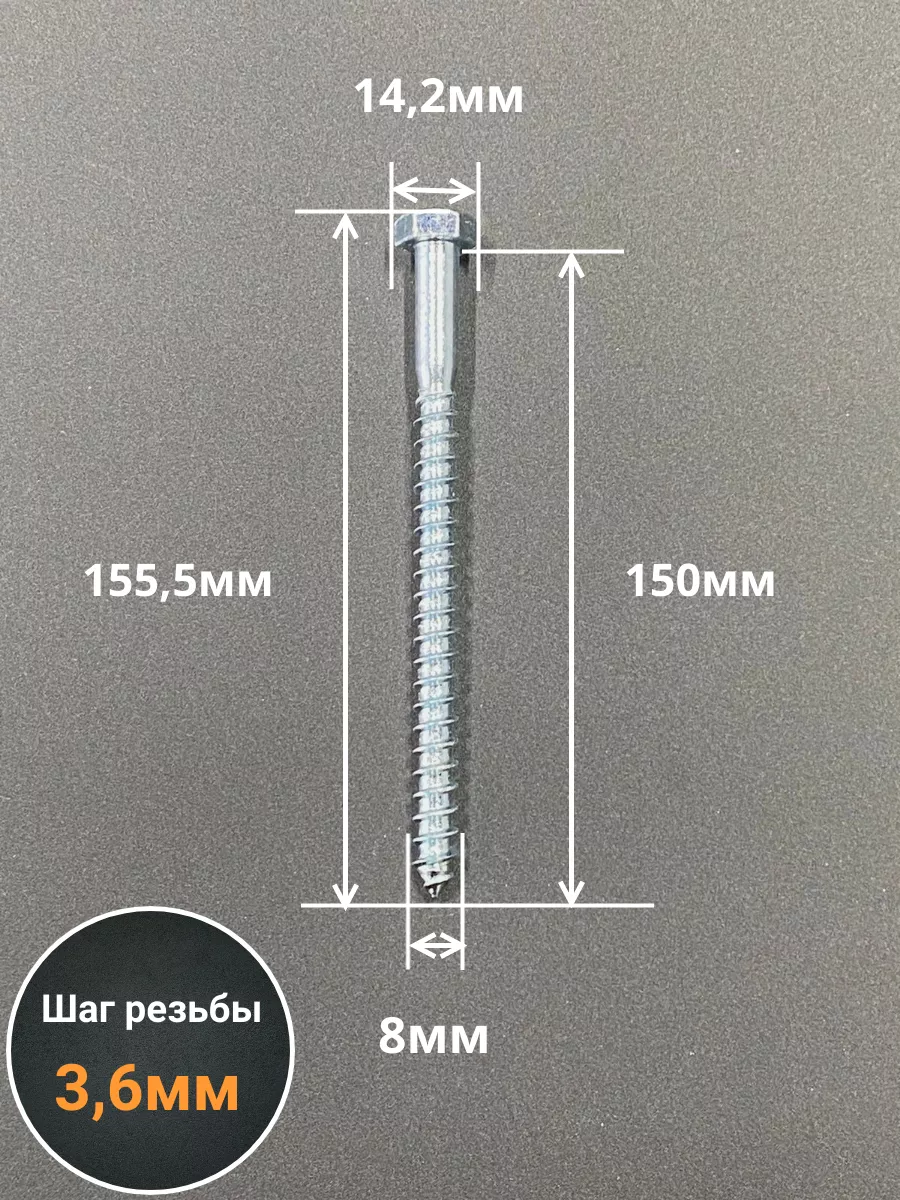 Шуруп глухарь по дереву 8х150 , 10 шт.