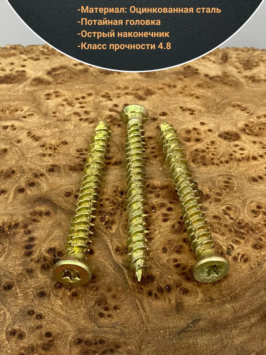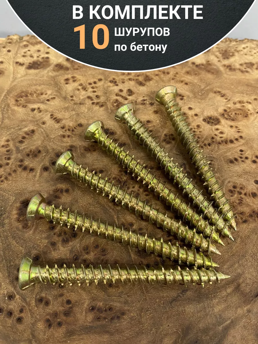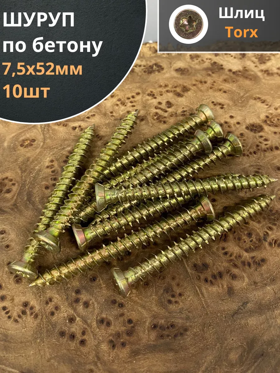 Шуруп — это металлический крепеж, представляющий собой стержень с головкой и острым наконечником. Универсальность проявляется в конструкции и области применения. Назначение шурупа — стягивать, скреплять между собой элементы: деревянных, древесностружечных и гипсокартонных плит, из тонкого листового металла. Саморез-шуруп "Бетон Нагель" с потайной головкой, с насечками и шлицем TORX. Шуруп широко используется в строительстве и при проведении ремонтно-отделочных работ. Часто применяются для крепления оконных рам и дверных коробок. Данный саморез изготавливается из стали и потом покрывается желтым цинком. По всей длине стержня расположена острая попеременная резьба. Шуруп имеет острый наконечник и потайную шляпку. Для работы с данной моделью шурупа необходима бита TORX. Материал основания: бетон, природный камень, кирпич.
