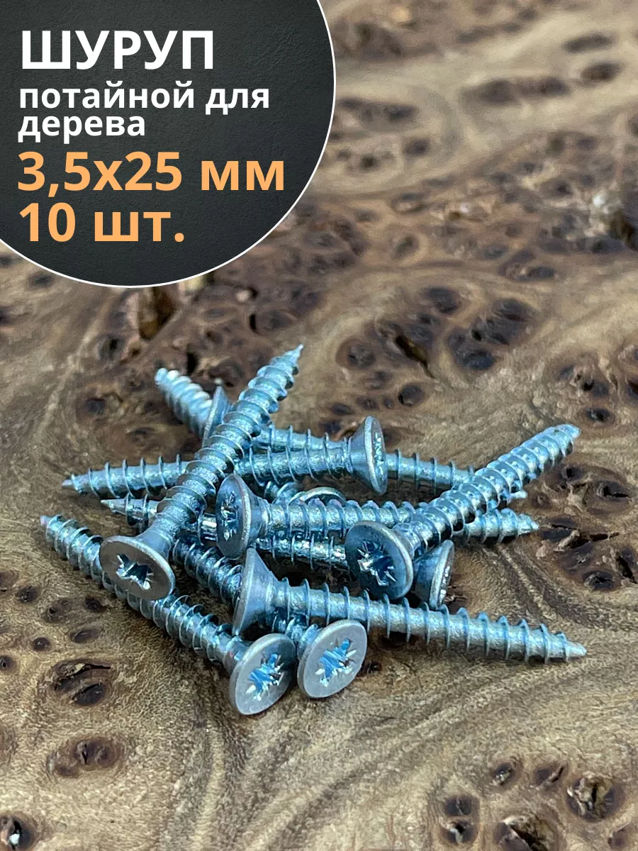 Шуруп потайной для дерева Б 3,5х25 БЦ, 10 шт.