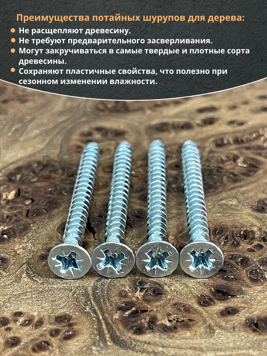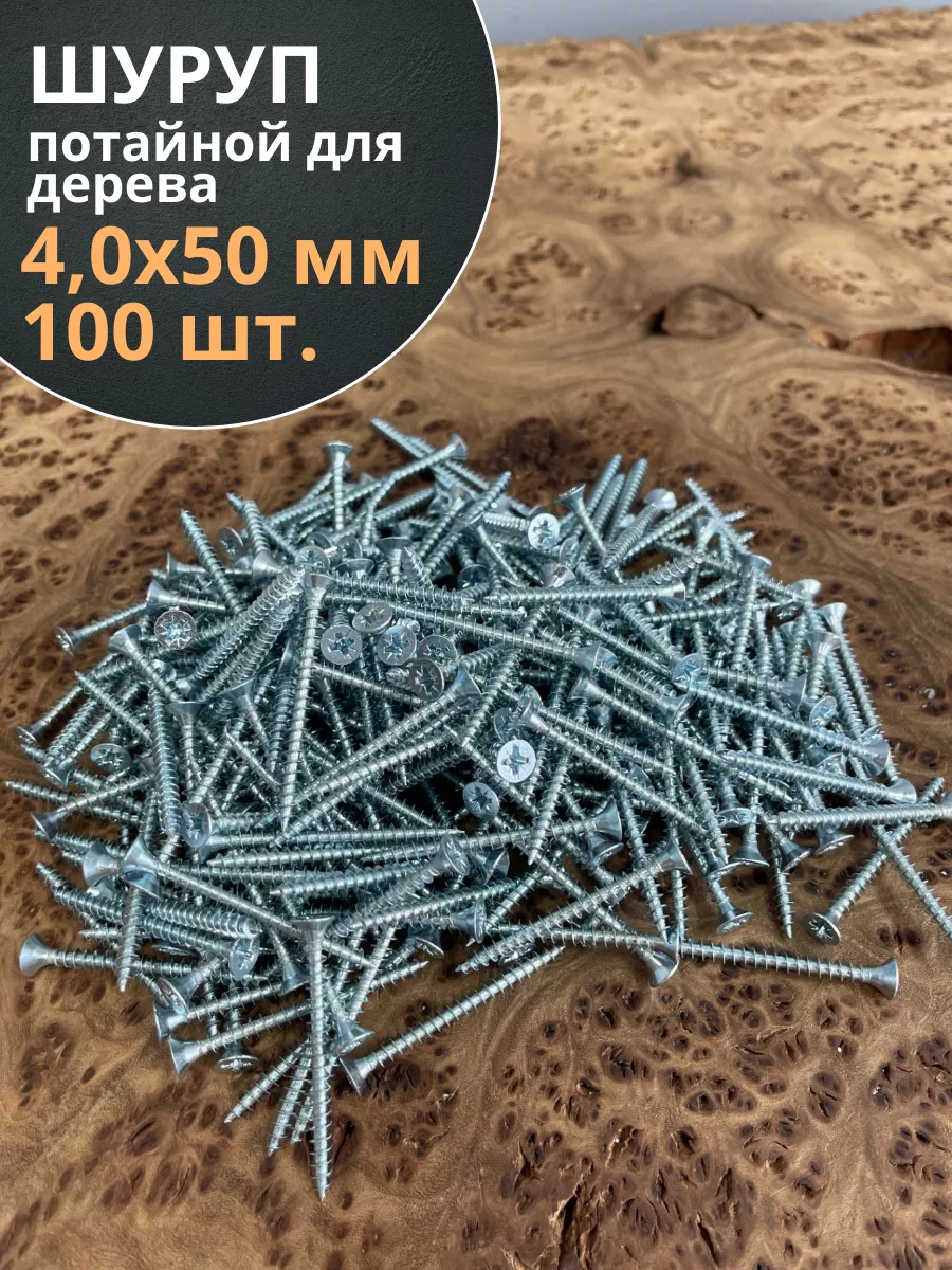 Шуруп потайной для дерева Б 4,0х50 БЦ, 100 шт.