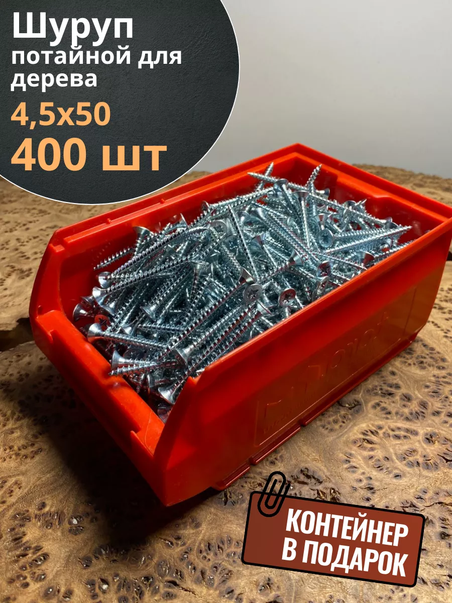 Шуруп потайной для дерева Б 4,5х50 БЦ,в контейнере, 400 шт.