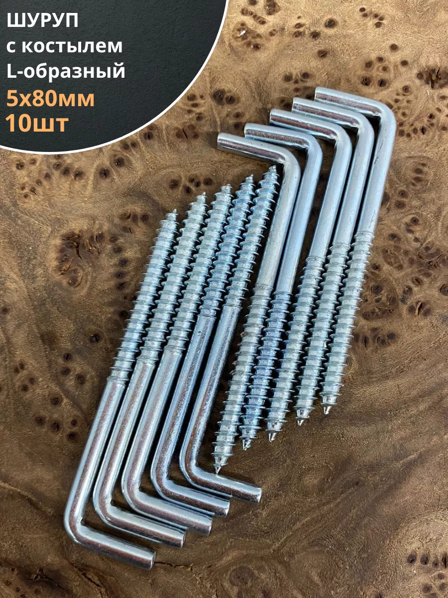 Шуруп с костылем L-образный 5х80, 10 шт.