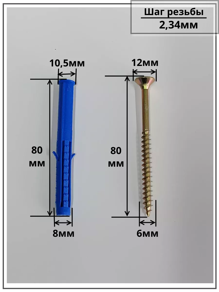 Шуруп саморез 6х80 мм ЖЦ с дюбелем 8х80, 20 шт. AB7106008065G07/B23300808003100ф20 1 шт.