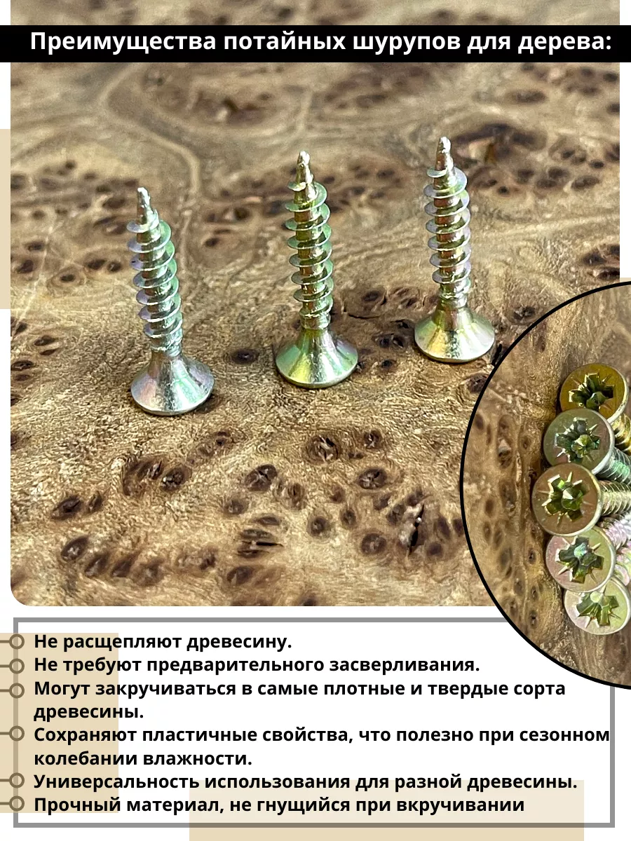Шуруп саморез потайной для дерева 3х20 мм, желтый цинк, 1 кг