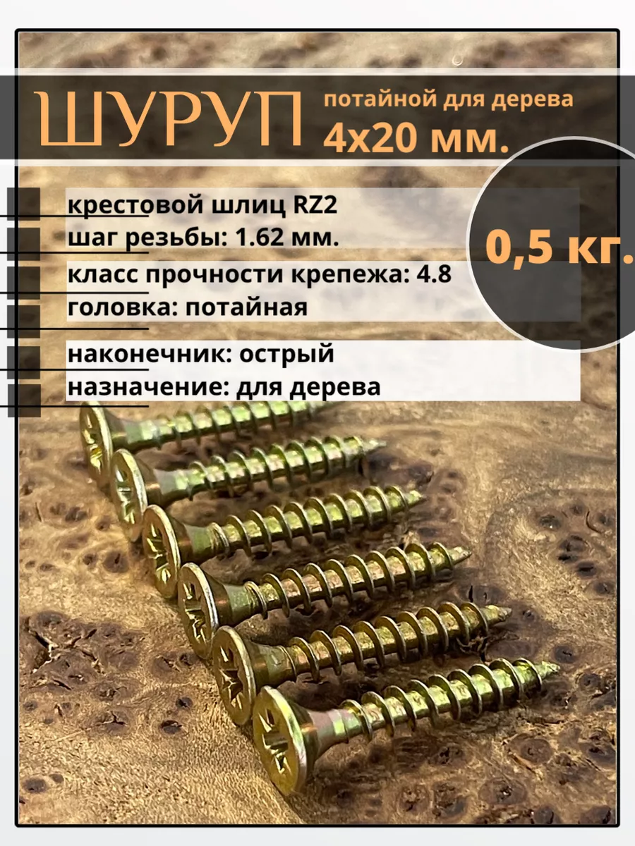 | Шуруп саморез потайной для дерева 4х20 мм, желтый цинк, 1 кг. | B04004002063G07кг | 1 шт. |
