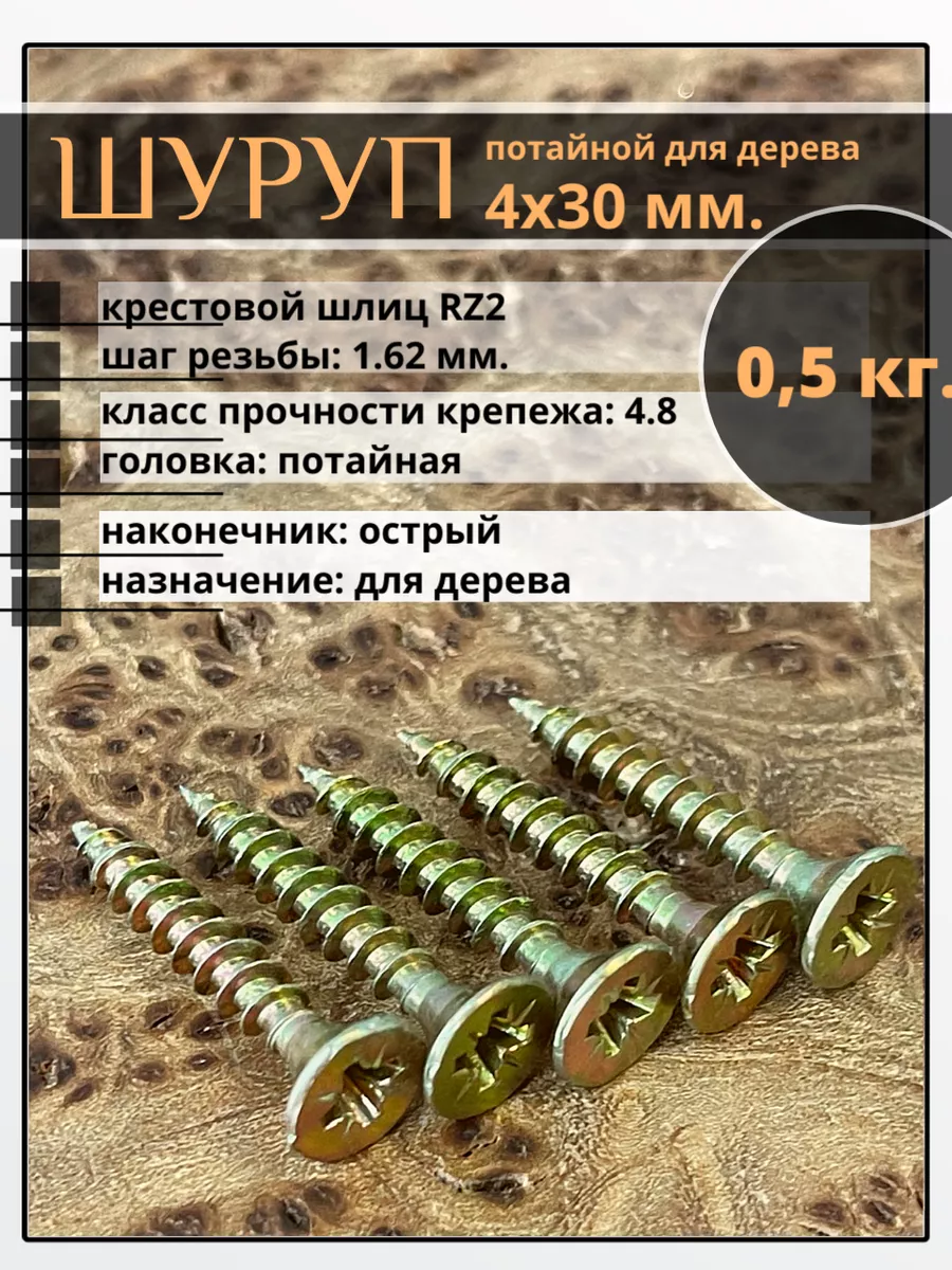 Шуруп саморез потайной для дерева 4х30 ЖЦ, 0,5 кг.